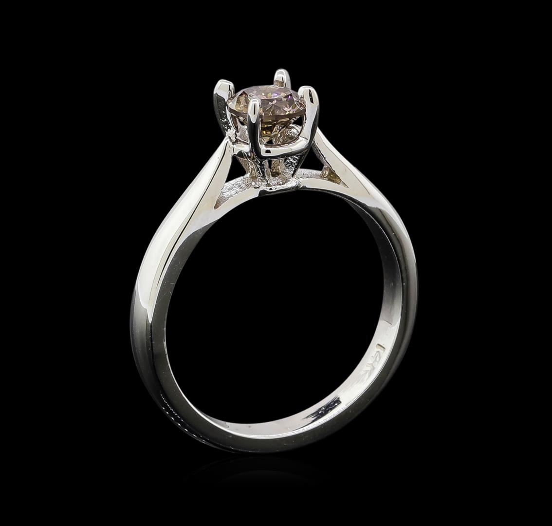 One electronically tested 14KT white gold ladies cast diamond solitaire ring with a flat shank with rounded edges with a bright polish finish. Identified with markings of "14K". Condition is new. Containing: One prong set round brilliant cut diamond, measuring 5.45 - 5.45 x 3.27mm (depth est.) exact weight 0.67ct. Clarity: I-1, Cut is Good. Diamonds are graded in the mounting, unless otherwise stated. Total Weight of Diamonds 0.67ct. Total Weight of Solitaire Ring 3.60 grams. GGL Appraised at $1,515.00.