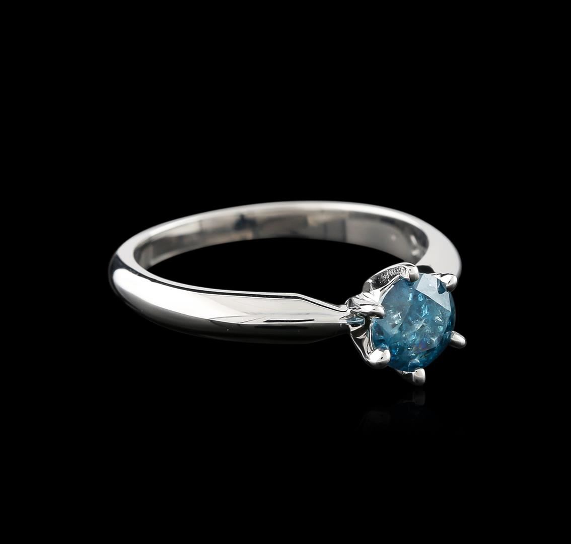 One electronically tested 14KT white gold ladies cast diamond solitaire ring with a knife edge shank with a bright polish finish. Identified with markings of "14K". Condition is new. Containing: One prong set round brilliant cut diamond, measuring 5.60 - 5.60 x 3.65mm (depth est.) exact weight 0.67ct. Clarity: I-3, Cut is Good. Color of the stone has been treated. Diamonds are graded in the mounting, unless otherwise stated. Total Weight of Diamonds 0.67ct. Total Weight of Solitaire Ring 2.80 grams. GGL Appraised at $1,235.00.