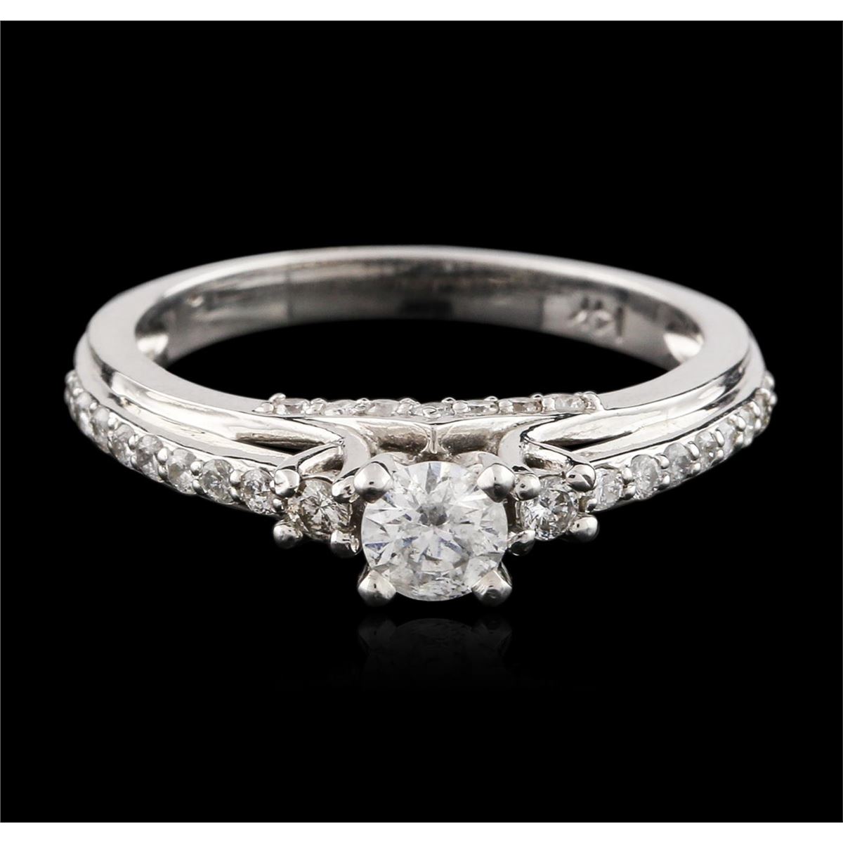 One ring featuring: 14KT white gold weighing 3.48 grams containing one prong set round center diamond with a total weight of 0.29ct and prong set round diamonds with a total weight of 0.38ct.