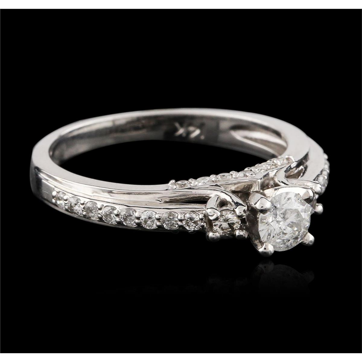 One ring featuring: 14KT white gold weighing 3.48 grams containing one prong set round center diamond with a total weight of 0.29ct and prong set round diamonds with a total weight of 0.38ct.