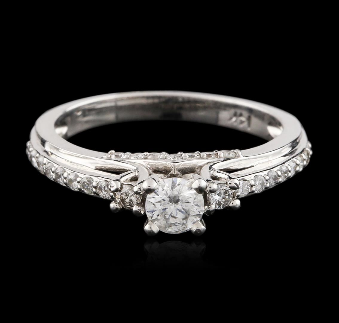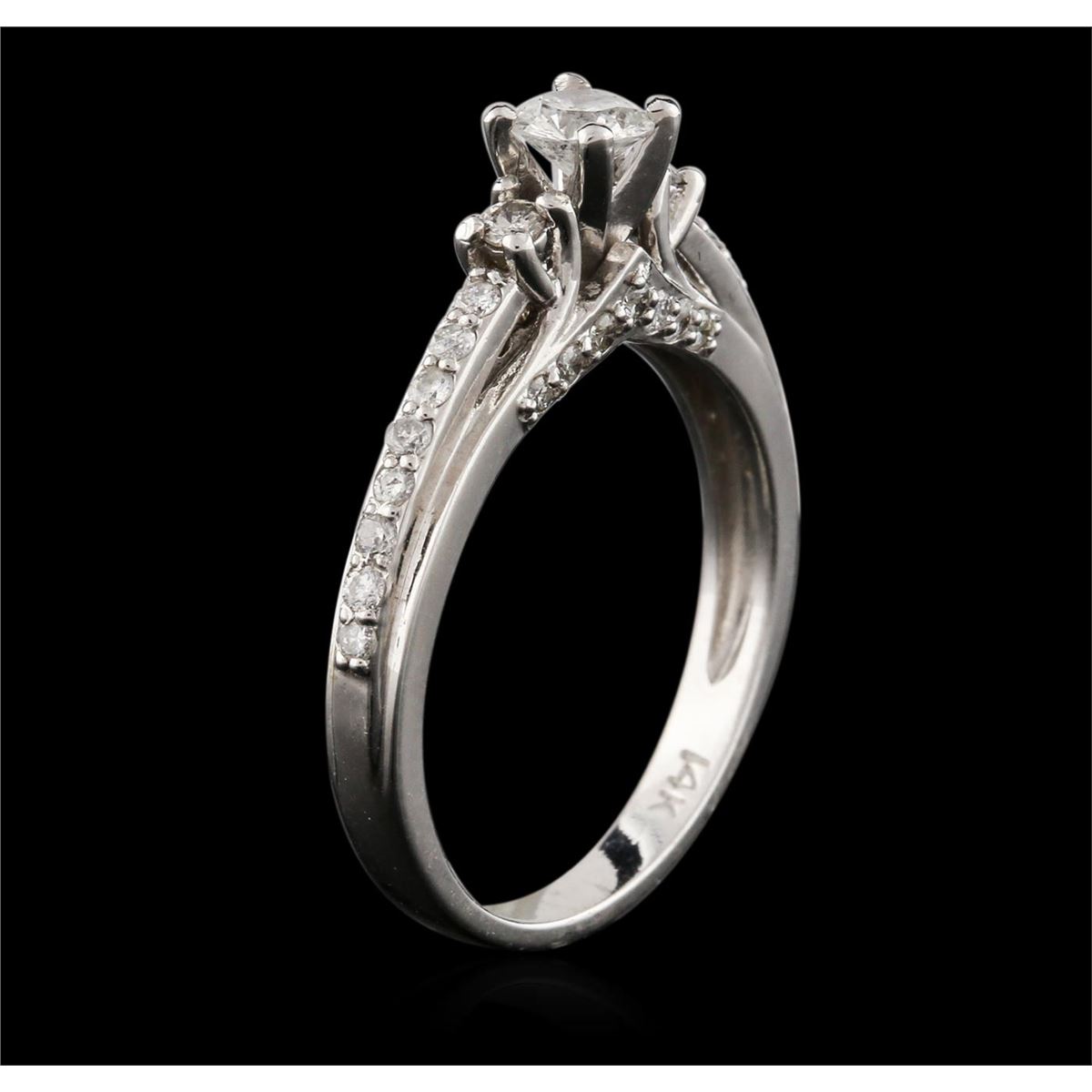 One ring featuring: 14KT white gold weighing 3.48 grams containing one prong set round center diamond with a total weight of 0.29ct and prong set round diamonds with a total weight of 0.38ct.