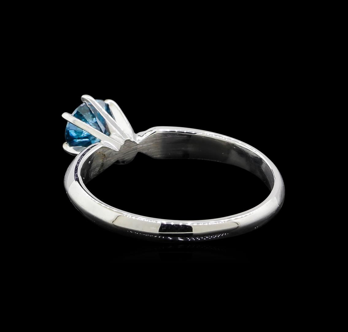 One electronically tested 14KT white gold ladies cast diamond solitaire ring with a half round shank with a bright polish finish. Identified with markings of "14K". Condition is new. Containing: One prong set round brilliant cut diamond, measuring 5.40 - 5.40 x 3.51mm (depth est.) exact weight 0.68ct. Clarity: I-2, Cut is Good. Color of the stone has been treated. Diamonds are graded in the mounting, unless otherwise stated. Total Weight of Diamonds 0.68ct. Total Weight of Solitaire Ring 2.40 grams. GGL Appraised at $1,575.00.