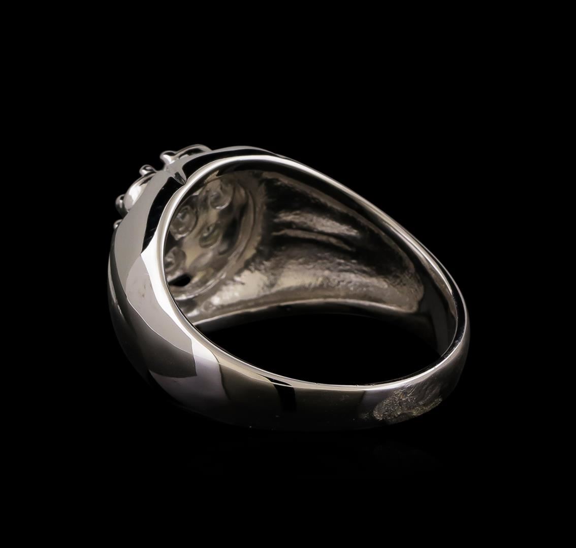 One electronically tested 14KT white gold unisex combination cast & assembled diamond ring with a bright polish finish. Identified with markings of "14K". Condition is new. Containing: Seven prong set round brilliant cut diamonds, measuring 3.00 - 3.00 x 1.80mm (depth est.) approximate total weight of 7 Stones = 0.69ct. Clarity: SI-2 to I-1. Color: J - K, Cut is Good. All diamonds are graded in the mounting, unless otherwise stated. Total Weight of Diamonds 0.69ct. Total Weight of Ring 7.70 grams. GGL Appraised at $3,195.00.