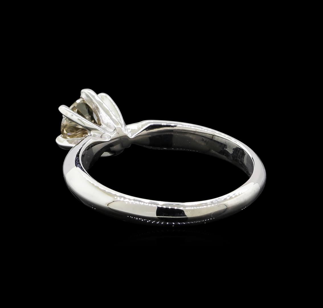 One electronically tested 14KT white gold ladies cast diamond solitaire ring with a knife edge shank with a bright polish finish. Identified with markings of "14K". Condition is new. Containing: One prong set round brilliant cut diamond, measuring 5.60 - 5.60 x 3.36mm (depth est.) exact weight 0.70ct. Clarity: I-1, Cut is Good. Diamonds are graded in the mounting, unless otherwise stated. Total Weight of Diamonds 0.70ct. Total Weight of Solitaire Ring 3.00 grams. GGL Appraised at $1,475.00.
