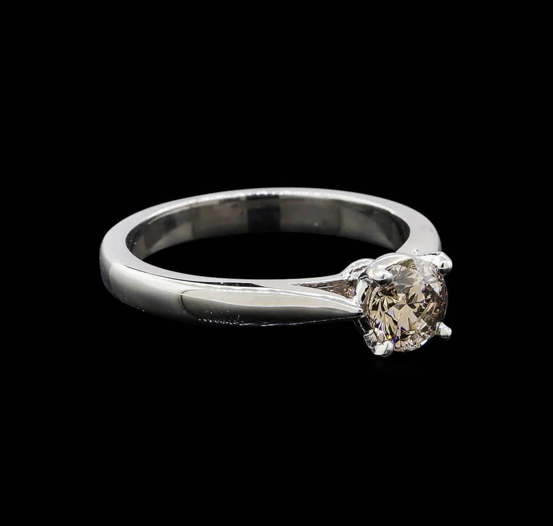 One electronically tested 14KT white gold ladies cast diamond solitaire ring with a flat shank with rounded edges with a bright polish finish. Identified with markings of "14K". Condition is new. Containing: One prong set round brilliant cut diamond, measuring 5.60 - 5.60 x 3.36mm (depth est.) exact weight 0.70 ct. Clarity: I-1, Cut is Good. Diamonds are graded in the mounting, unless otherwise stated. Total Weight of Diamonds 0.70 ct. Total Weight of Solitaire Ring 3.60 grams. GGL Appraised.