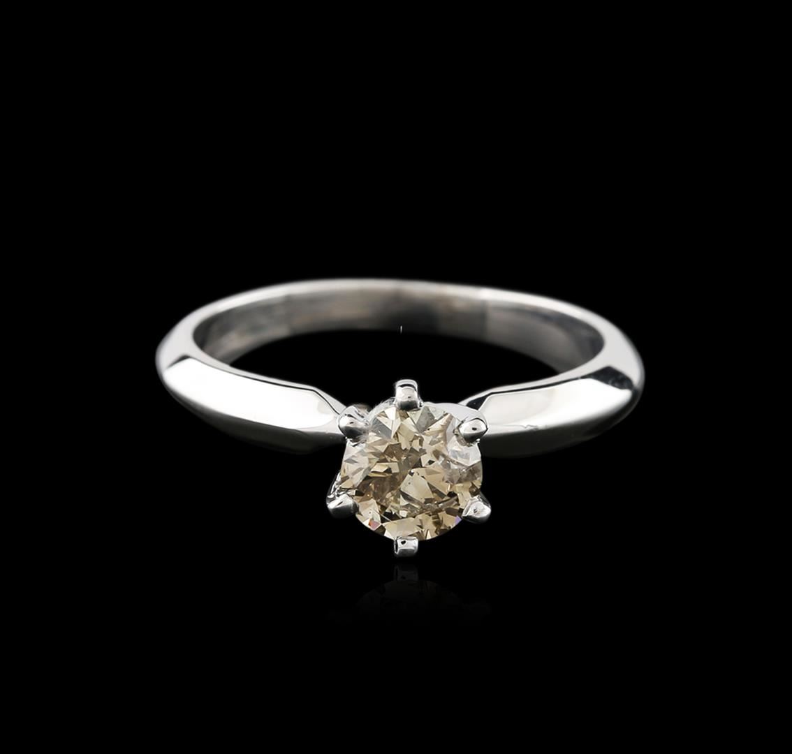 One electronically tested 14KT white gold ladies cast diamond solitaire ring with a knife edge shank with a bright polish finish. Identified with markings of "14K". Condition is new. Containing: One prong set round brilliant cut diamond, measuring 5.60 - 5.60 x 3.36mm (depth est.) exact weight 0.70ct. Clarity: I-1, Cut is Good. Diamonds are graded in the mounting, unless otherwise stated. Total Weight of Diamonds 0.70ct. Total Weight of Solitaire Ring 3.00 grams. GGL Appraised at $1,475.00.