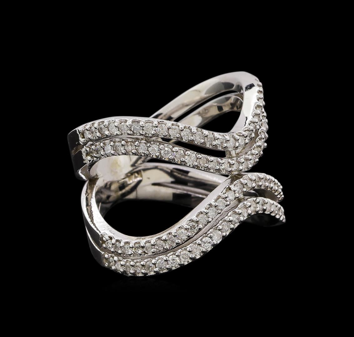 One electronically tested 14KT white gold ladies cast diamond ring with a bright polish finish. Identified with markings of "14K". Condition is new. Containing: One Hundred Twelve bead set round brilliant cut diamonds, measuring 1.20 - 1.20 x 0.72mm (depth est.) approximate total weight of 112 Stones = 0.71ct. Clarity: I-1 to I-2. Color: I - J. All diamonds are graded in the mounting, unless otherwise stated. Total Weight of Diamonds 0.71ct. Total Weight of Ring 8.10 grams. GGL Appraised at $3,190.00.
