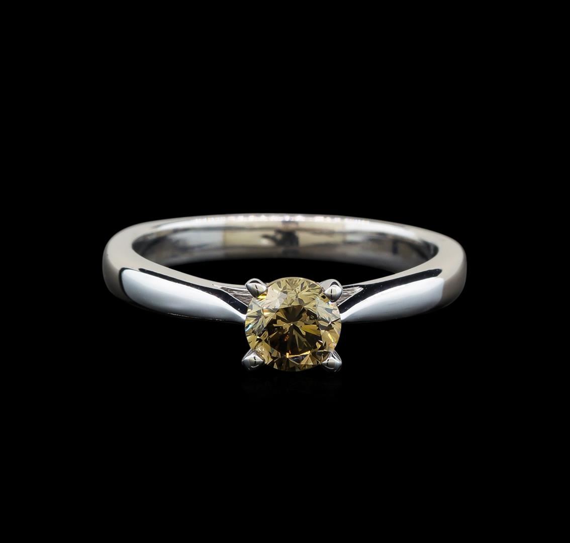 One electronically tested 14KT white gold ladies cast diamond solitaire ring with a flat shank with rounded edges with a bright polish finish. Identified with markings of "14K". Condition is new. Containing: One prong set round brilliant cut diamond, measuring 5.20 - 5.20 x 3.12mm (depth est.) exact weight 0.71ct. Clarity: SI-1, Cut is Good. Diamonds are graded in the mounting, unless otherwise stated. Total Weight of Diamonds 0.71ct. Total Weight of Solitaire Ring 3.20 grams. GGL Appraised at $2,160.00.