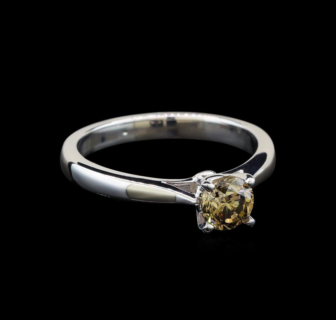 One electronically tested 14KT white gold ladies cast diamond solitaire ring with a flat shank with rounded edges with a bright polish finish. Identified with markings of "14K". Condition is new. Containing: One prong set round brilliant cut diamond, measuring 5.20 - 5.20 x 3.12mm (depth est.) exact weight 0.71ct. Clarity: SI-1, Cut is Good. Diamonds are graded in the mounting, unless otherwise stated. Total Weight of Diamonds 0.71ct. Total Weight of Solitaire Ring 3.20 grams. GGL Appraised.