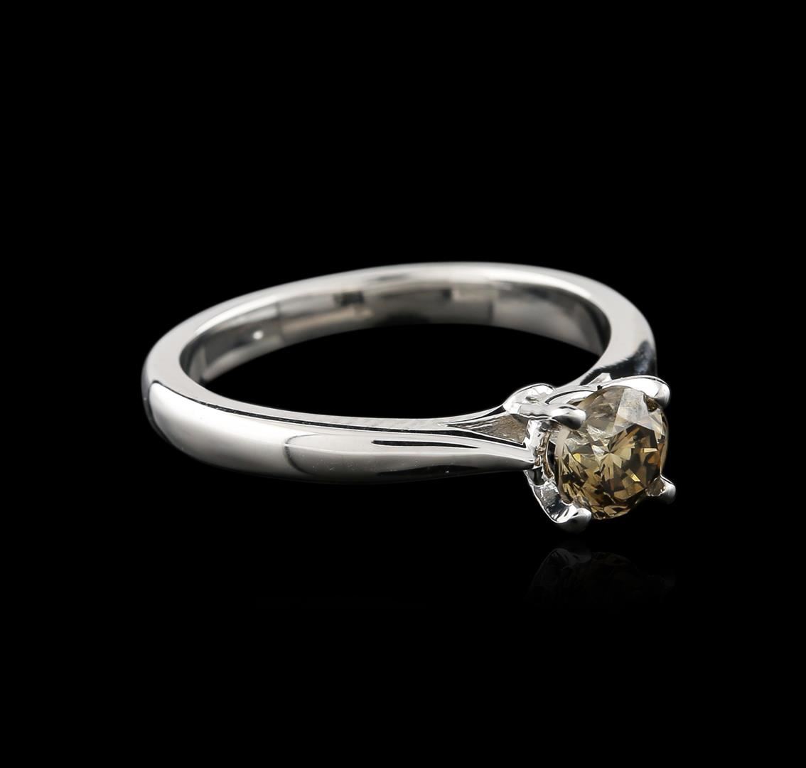 One electronically tested 14KT white gold ladies cast diamond solitaire ring with a flat shank with rounded edges with a bright polish finish. Identified with markings of "14K". Condition is new. Containing: One prong set round brilliant cut diamond, measuring 5.20 - 5.20 x 3.12mm (depth est.) exact weight 0.71ct. Clarity: SI-1, Cut is Good. Diamonds are graded in the mounting, unless otherwise stated. Total Weight of Diamonds 0.71ct. Total Weight of Solitaire Ring 3.20 grams. GGL Appraised at $2,160.00.