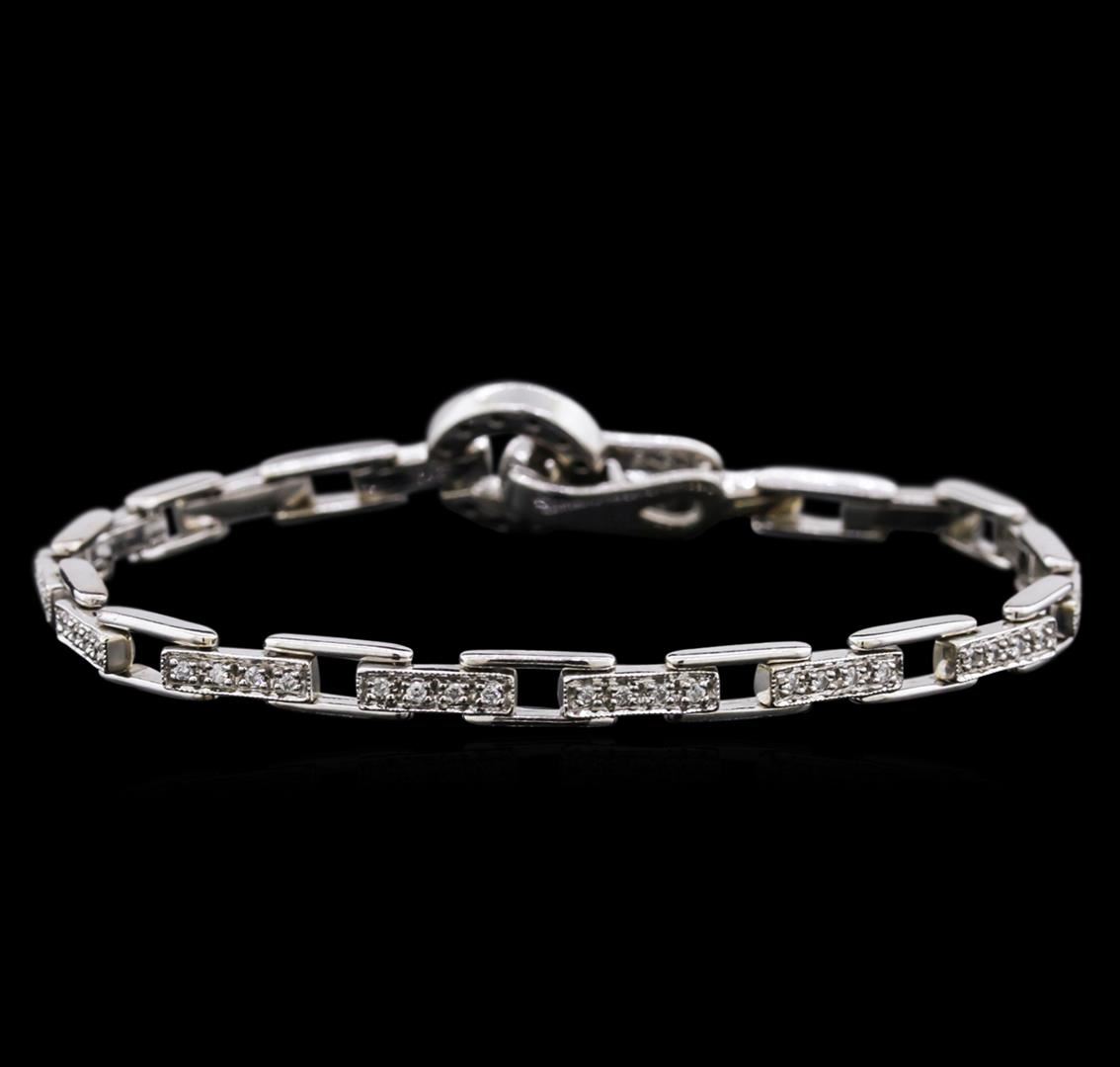 One electronically tested 14KT white gold ladies cast diamond bracelet with a foldover clasp with a bright polish finish. 7" in length. Condition is new. Containing: Eighty prong set round brilliant cut diamonds, measuring 1.40 - 1.30 x 0.81mm (depth est.) approximate total weight of 80 Stones = 0.72ct. Clarity: SI-1 to I-1. Color: G - H, Cut is Good. Diamonds are graded in the mounting, unless otherwise stated. Total Weight of Diamonds 0.72ct. Total Weight of Bracelet 16.50 grams. GGL Appraised at $3,540.00.