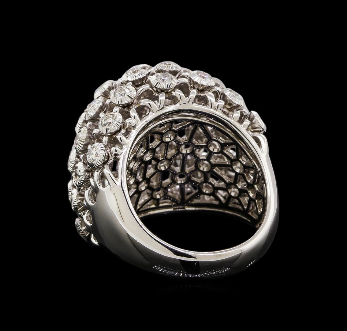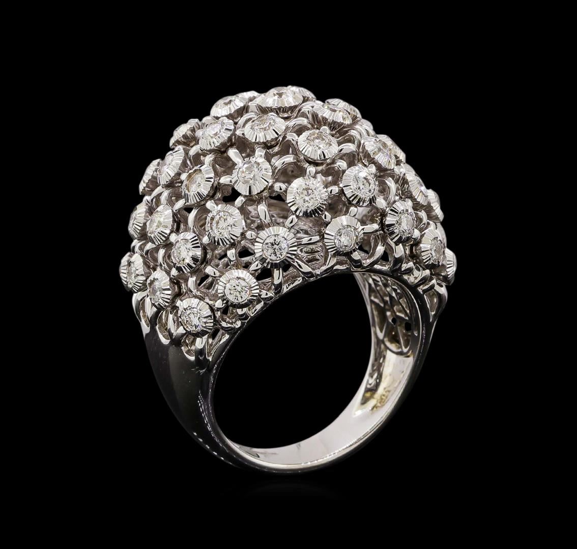 One electronically tested 14KT white gold ladies cast diamond ring with a bright polish finish. Identified with markings of "14K". Condition is new. Containing: Forty bezel set round brilliant cut diamonds, measuring 1.70 - 1.70 x 1.02mm (depth est.) approximate total weight of 40 Stones = 0.72ct. Clarity: SI-1 to SI-2. Color: I - J. All diamonds are graded in the mounting, unless otherwise stated. Total Weight of Diamonds 0.72ct. Total Weight of Ring 16.50 grams. GGL Appraised at $5,540.00.