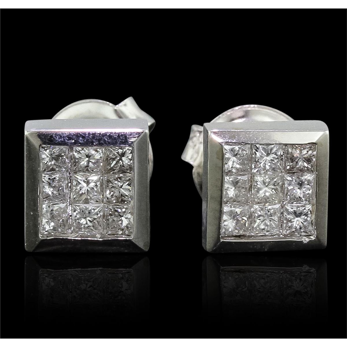One pair of earrings featuring: 14KT White Gold with a total weight of 2.70 grams, and Diamonds with a total weight of 0.73ctw.