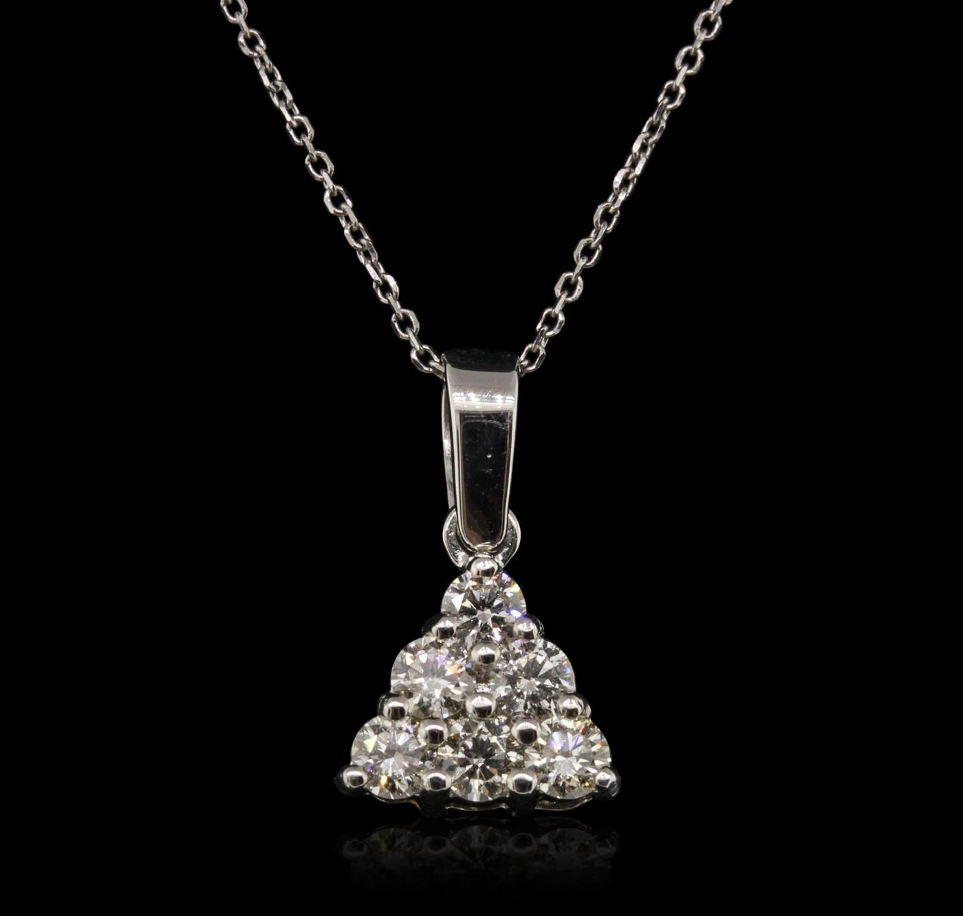 One pendant with chain featuring: 14KT White Gold with a total weight of 1.90 grams, and Diamonds.