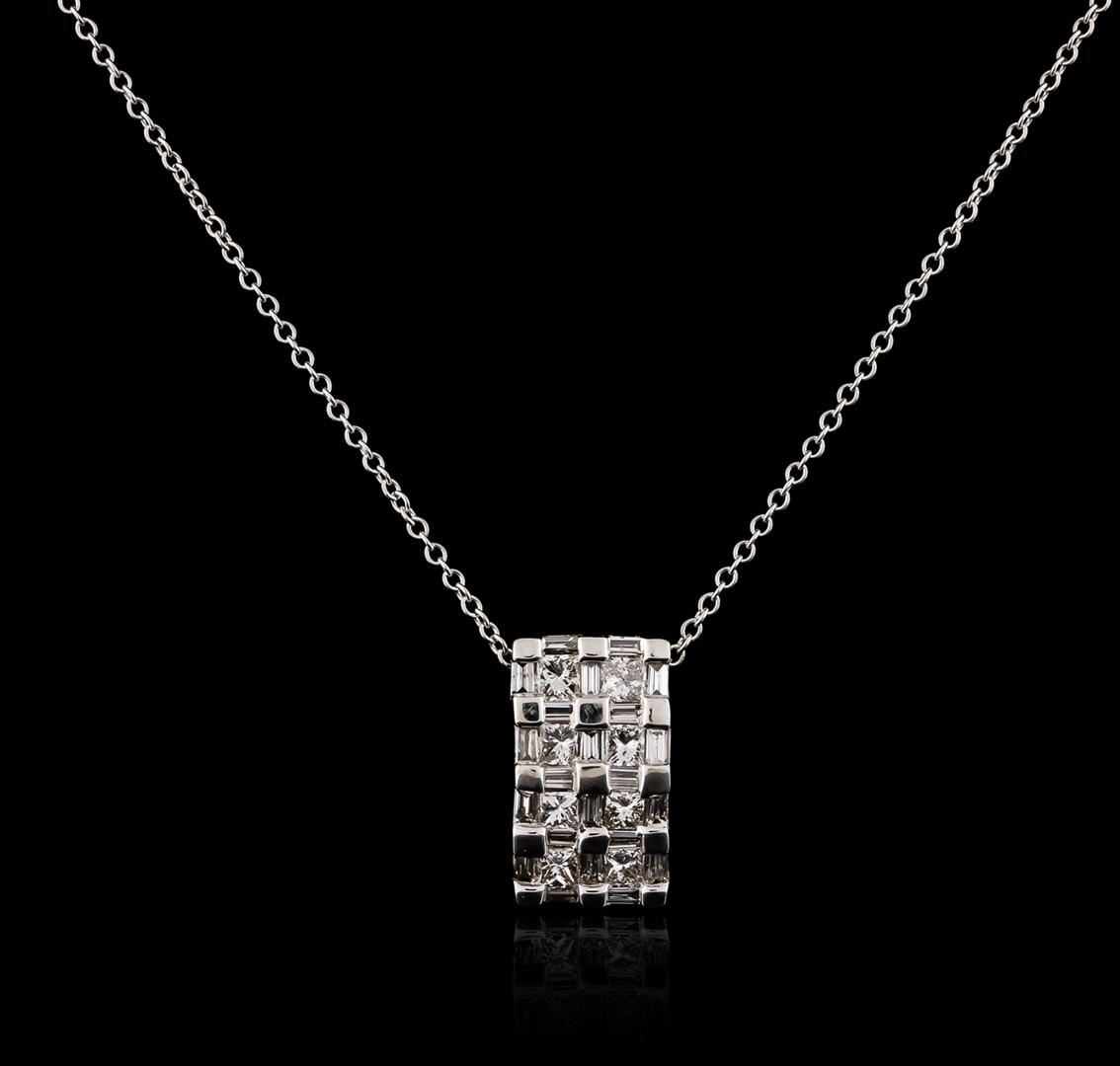 One pendant with chain featuring: 14KT white gold weighing 3.36 grams containing diamonds with a total weight of 0.75ct.