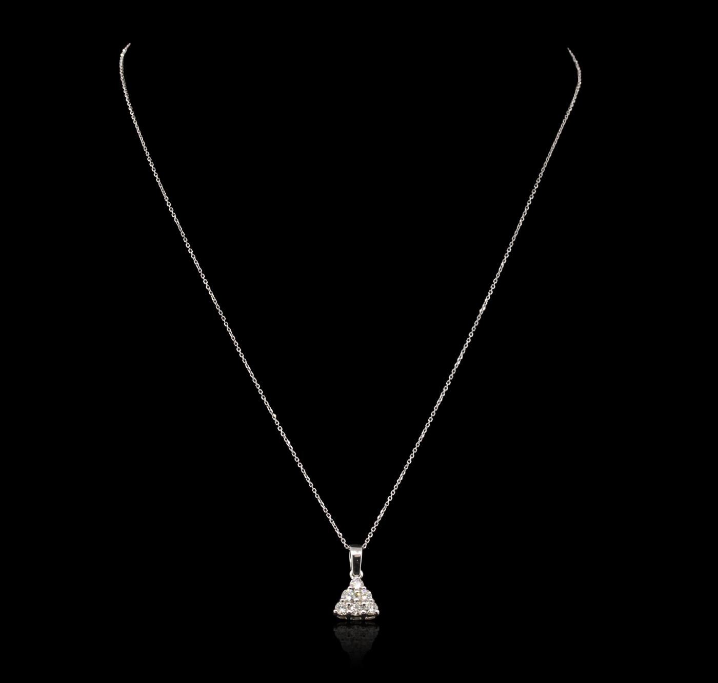 One pendant with chain featuring: 14KT White Gold with a total weight of 1.90 grams, and Diamonds.