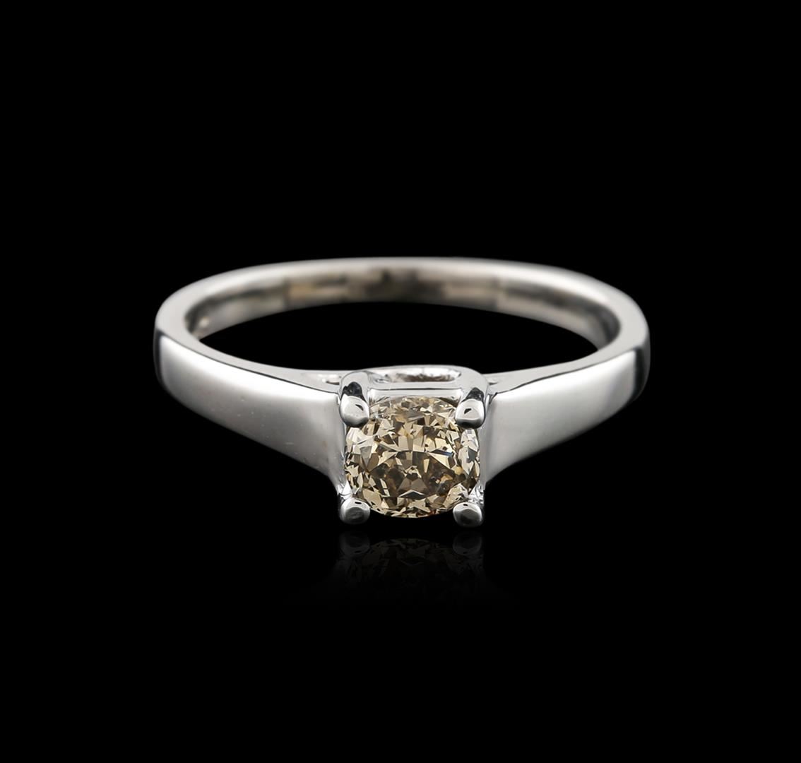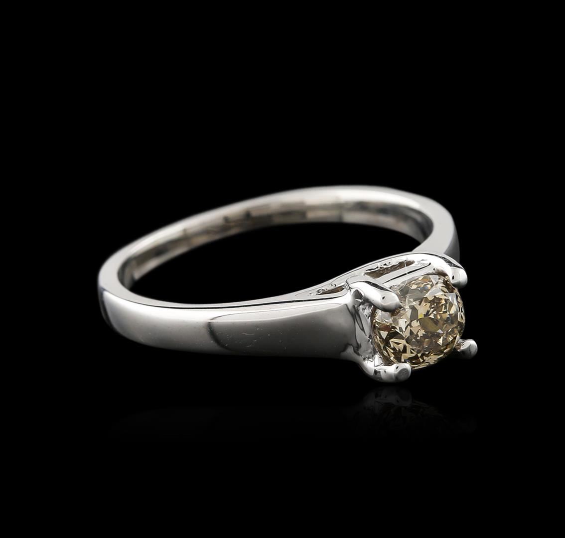 One electronically tested 14KT white gold ladies cast diamond solitaire ring with a flat shank with rounded edges with a bright polish finish. Identified with markings of "14K". Condition is new. Containing: One prong set round brilliant cut diamond, measuring 5.20 - 5.20 x 3.12mm (depth est.) exact weight 0.75ct. Clarity: SI-2, Cut is Good. Diamonds are graded in the mounting, unless otherwise stated. Total Weight of Diamonds 0.75ct. Total Weight of Solitaire Ring 2.80 grams. GGL Appraised at $1,520.00.