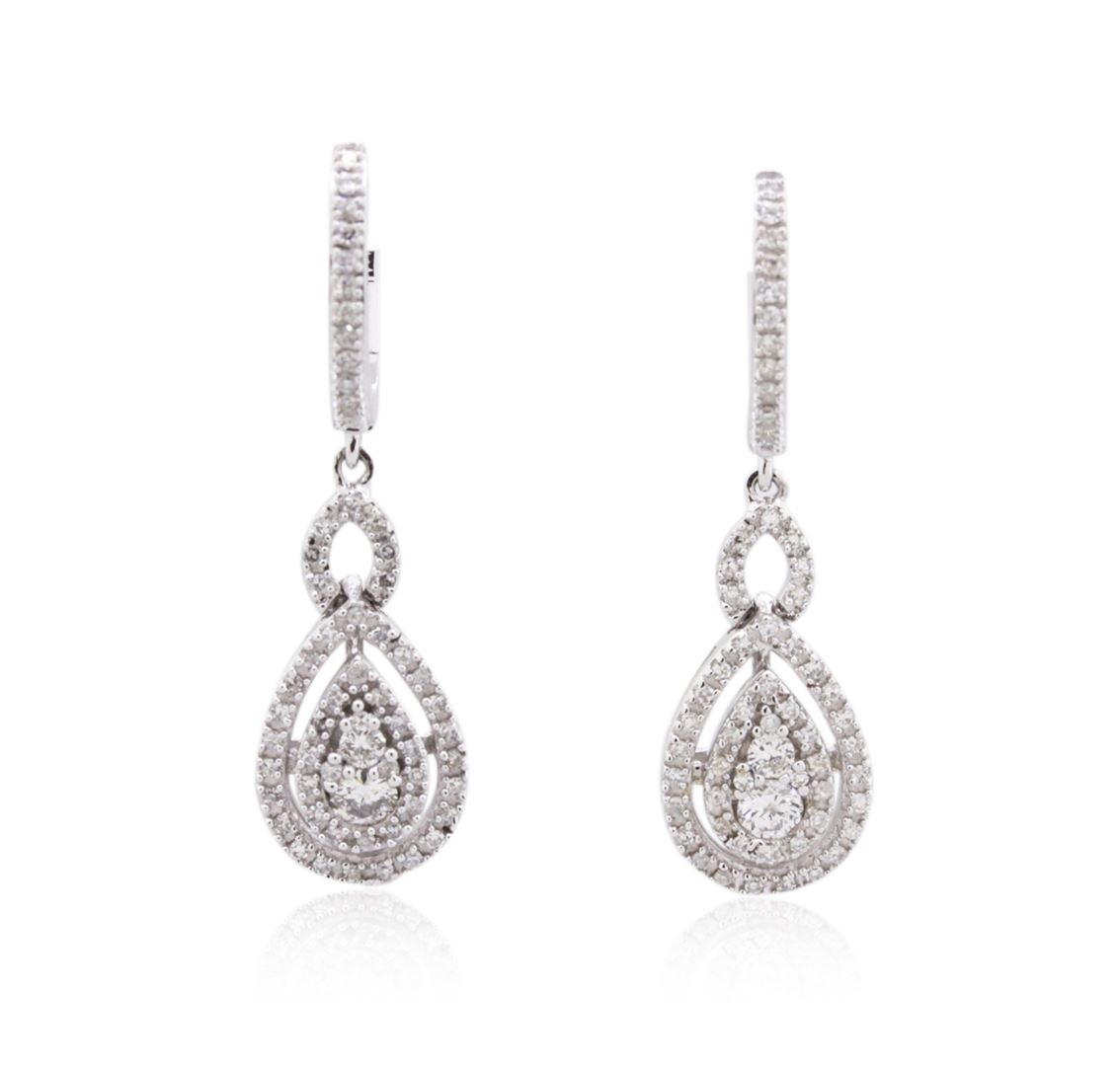 One pair of earrings featuring: 14KT white gold weighing 5.20 grams containing diamonds with a total weight of 0.75cts.