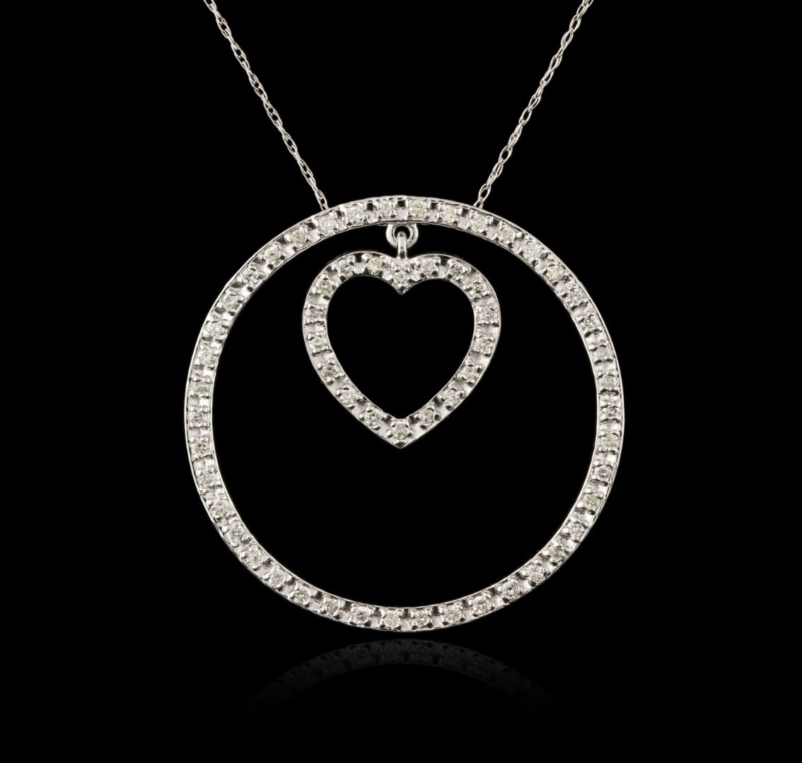 One pendant with chain featuring: 14KT white gold weighing 4.60 grams containing diamonds with a total weight of 0.75ct.