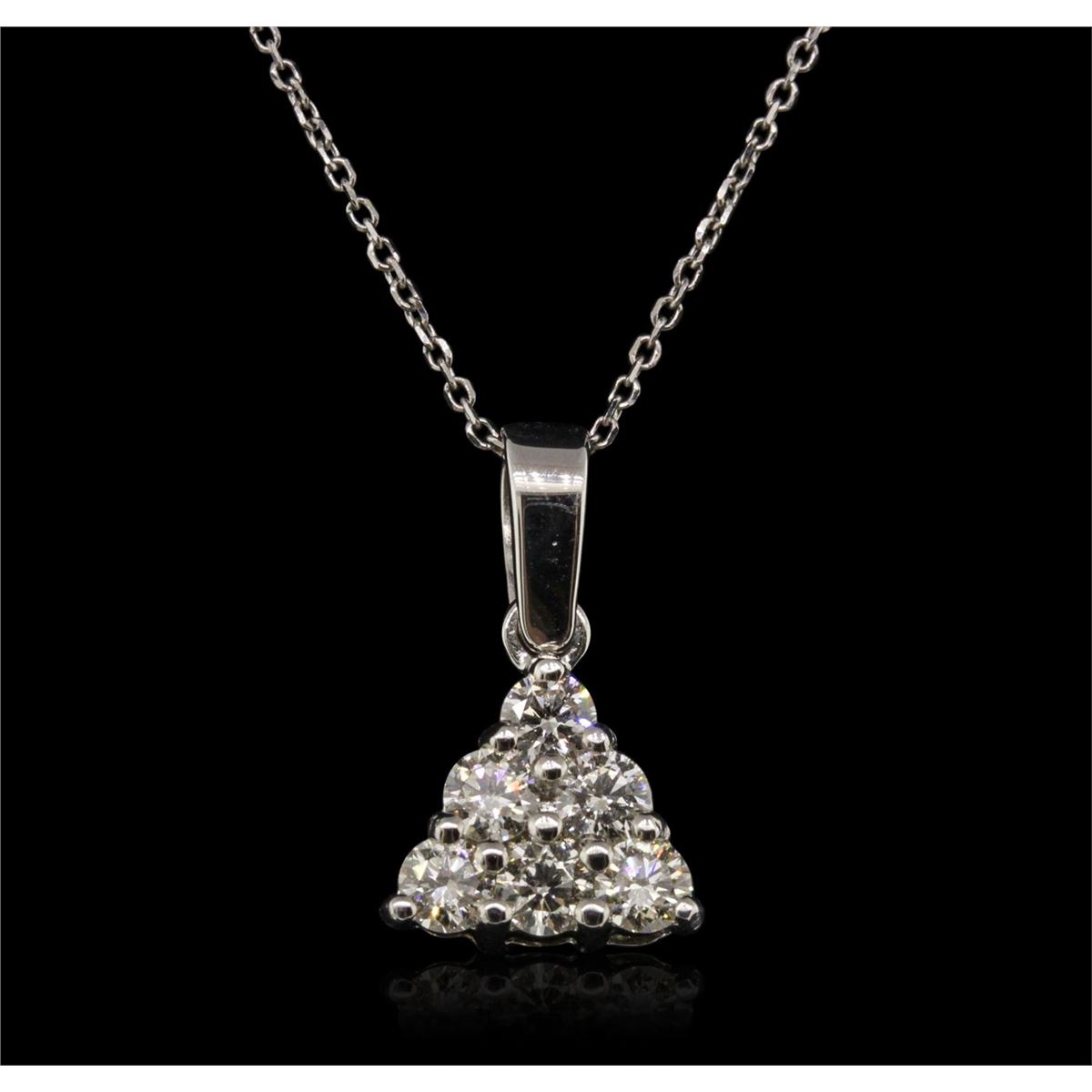 One pendant with chain featuring: 14KT White Gold with a total weight of 1.90 grams, and Diamonds.