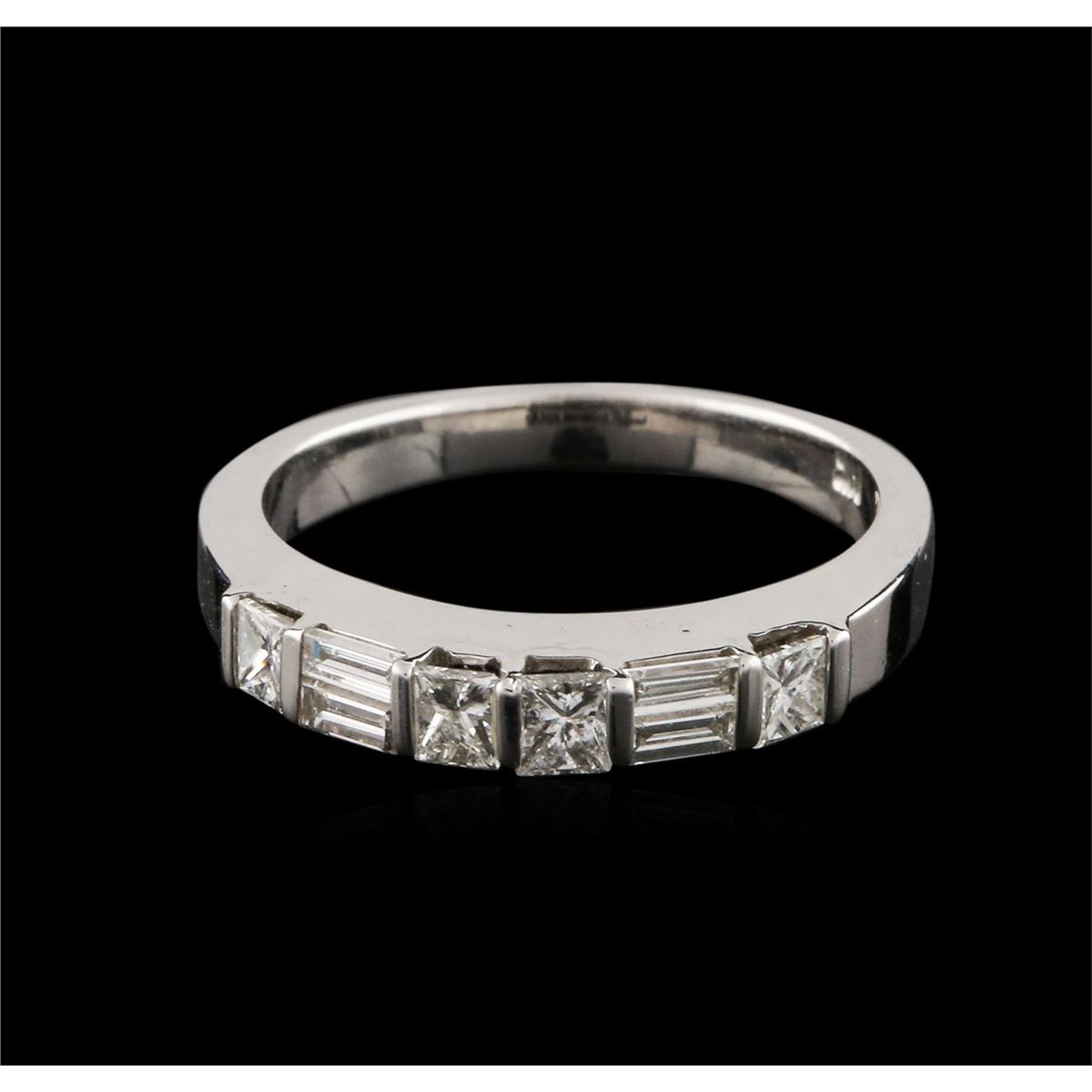One ring featuring: 14KT white gold weighing 3.70 grams containing channel set princess and baguette cut diamonds with a total weight of 0.75ct.