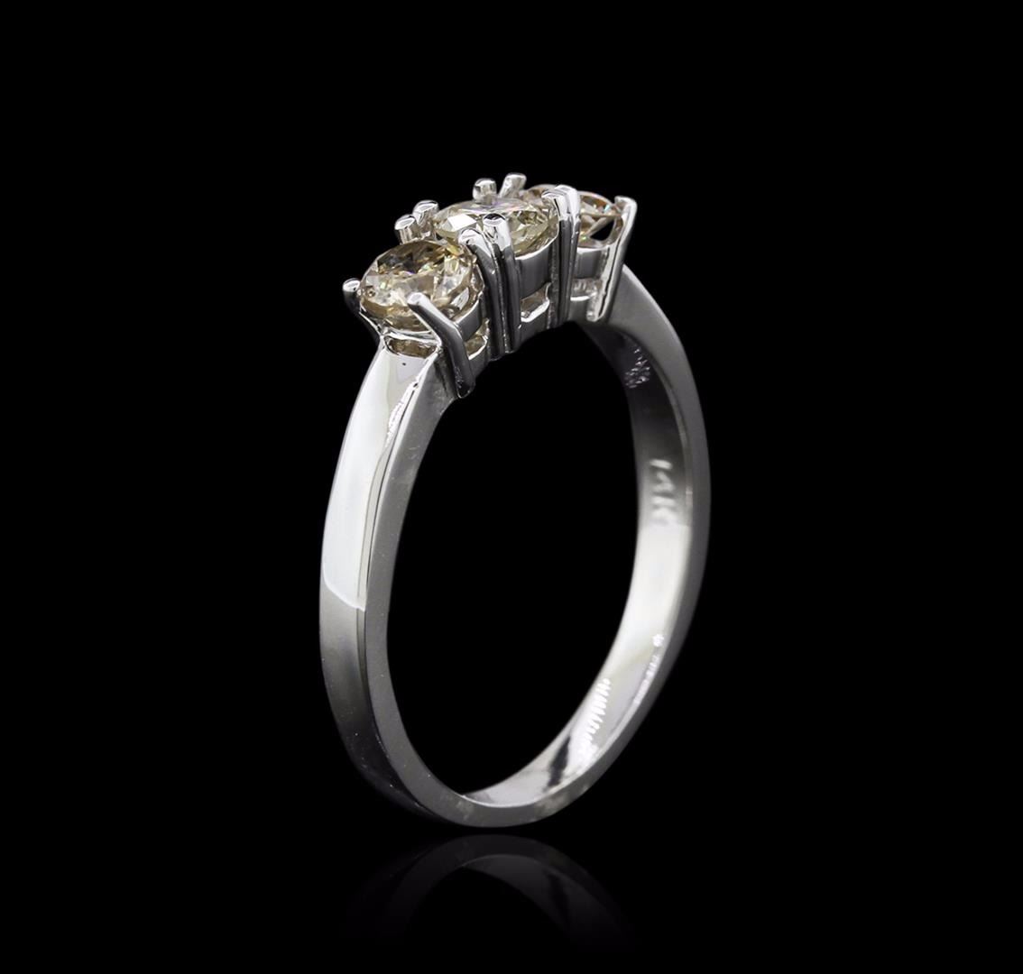 One ring featuring: 14KT white gold weighing 3.40 grams containing three diamonds with a total weight of 0.75ct.