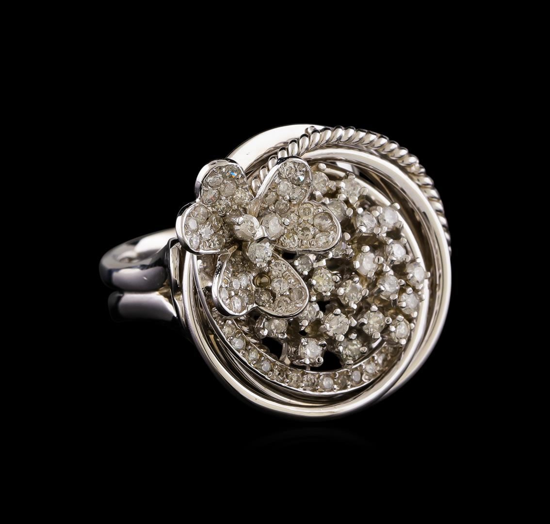 One electronically tested 14KT white gold ladies combination cast & assembled diamond ring with a bright polish finish. Identified with markings of "585". Condition is new. Containing: Seventy-Six prong set round brilliant cut diamonds, measuring 1.50 - 1.30 x 0.84mm (depth est.) approximate total weight of 76 Stones = 0.76ct. Clarity: SI-2 to I-2. Color: H - I, Cut is Good. All diamonds are graded in the mounting, unless otherwise stated. Total Weight of Diamonds 0.76ct. Total Weight of Ring 9.90 grams. GGL Appraised at $4,030.00.