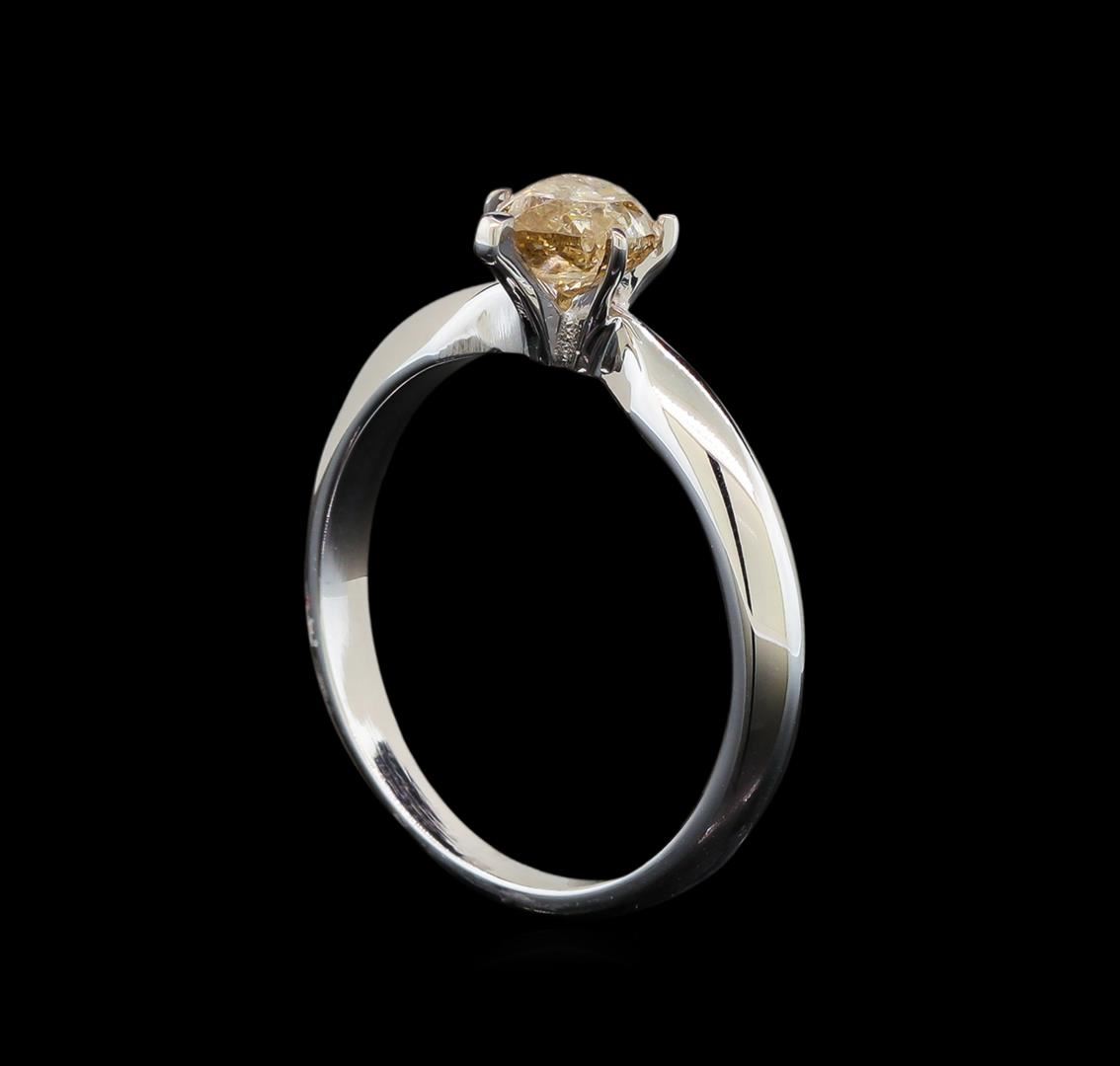 One electronically tested 14KT white gold ladies cast diamond solitaire ring with a knife edge shank with a bright polish finish. Identified with markings of "14K". Condition is new. Containing: One prong set pear shaped cut diamond, measuring 6.60 x 4.85 x 3.39mm (depth est.) exact weight 0.76ct. Clarity: I-2, Cut is Good. Diamonds are graded in the mounting, unless otherwise stated. Total Weight of Diamonds 0.76ct. Total Weight of Solitaire Ring 2.60 grams. GGL Appraised.