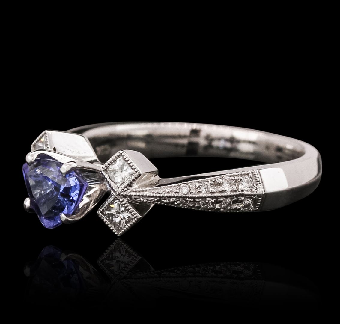 One ring featuring: 14KT white gold weighing 5.45 grams containing one trillion cut tanzanite with a total weight of 0.78ct and diamonds with a total weight of 0.36cts.