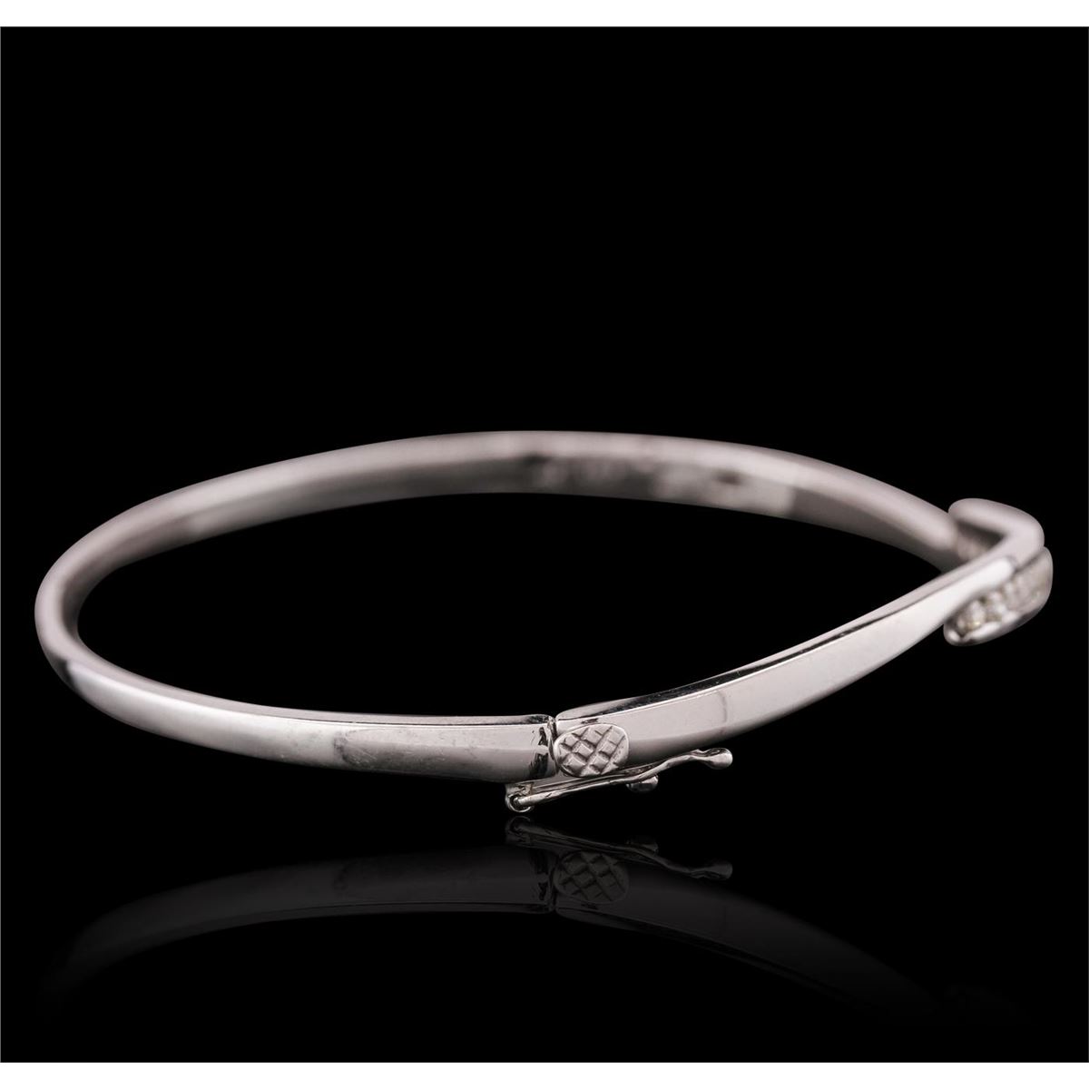 One bangle bracelet with safety clasp featuring: 14KT white gold weighing 12.80 grams containing 16 round cut diamonds with a total weight of 0.80cts.
