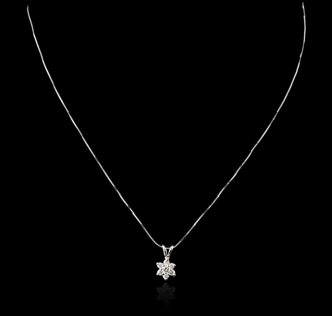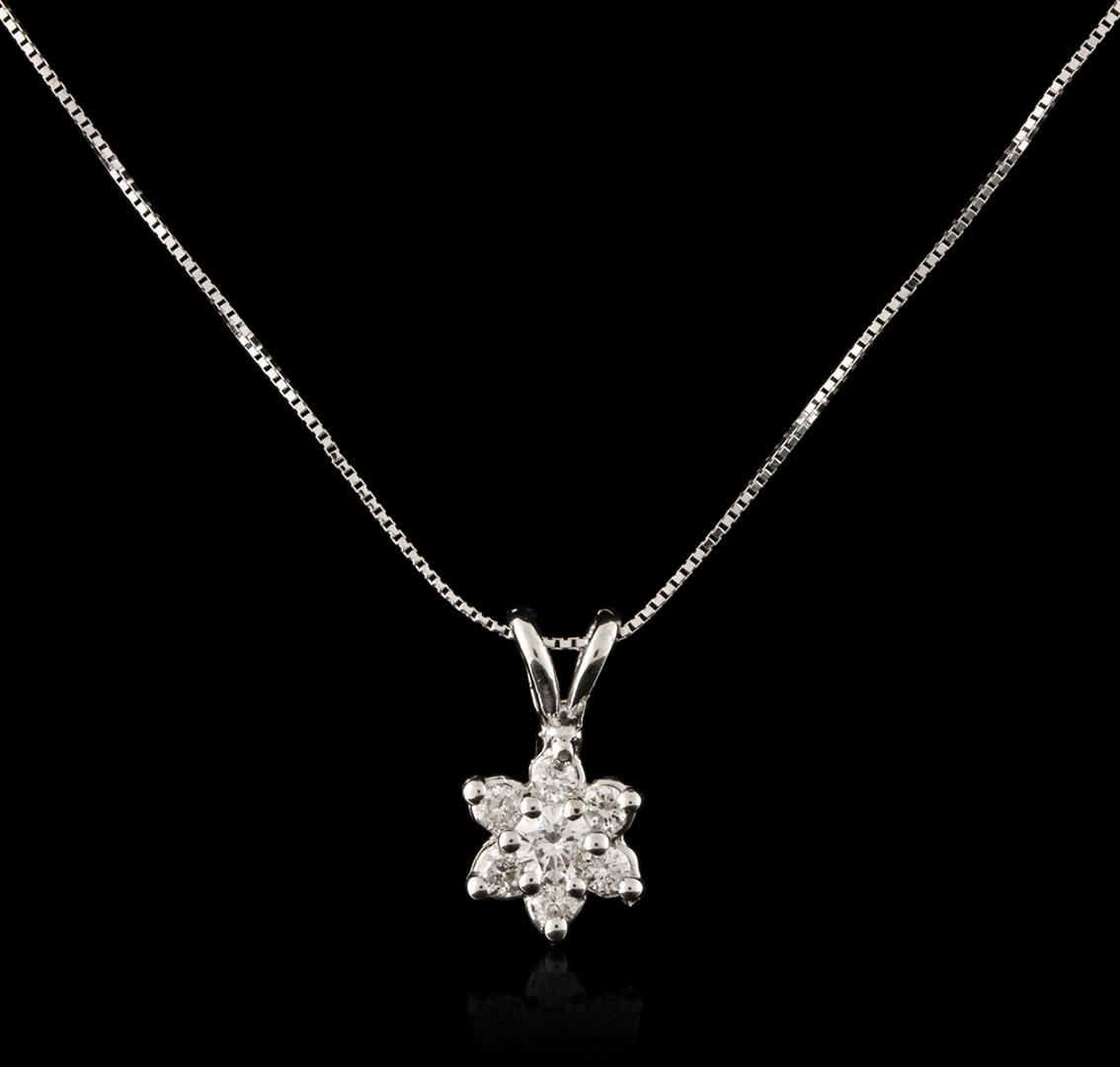 One pendant with chain featuring: 14KT white gold weighing 2.27 grams containing prong set round diamonds with a total weight of 0.80ct.