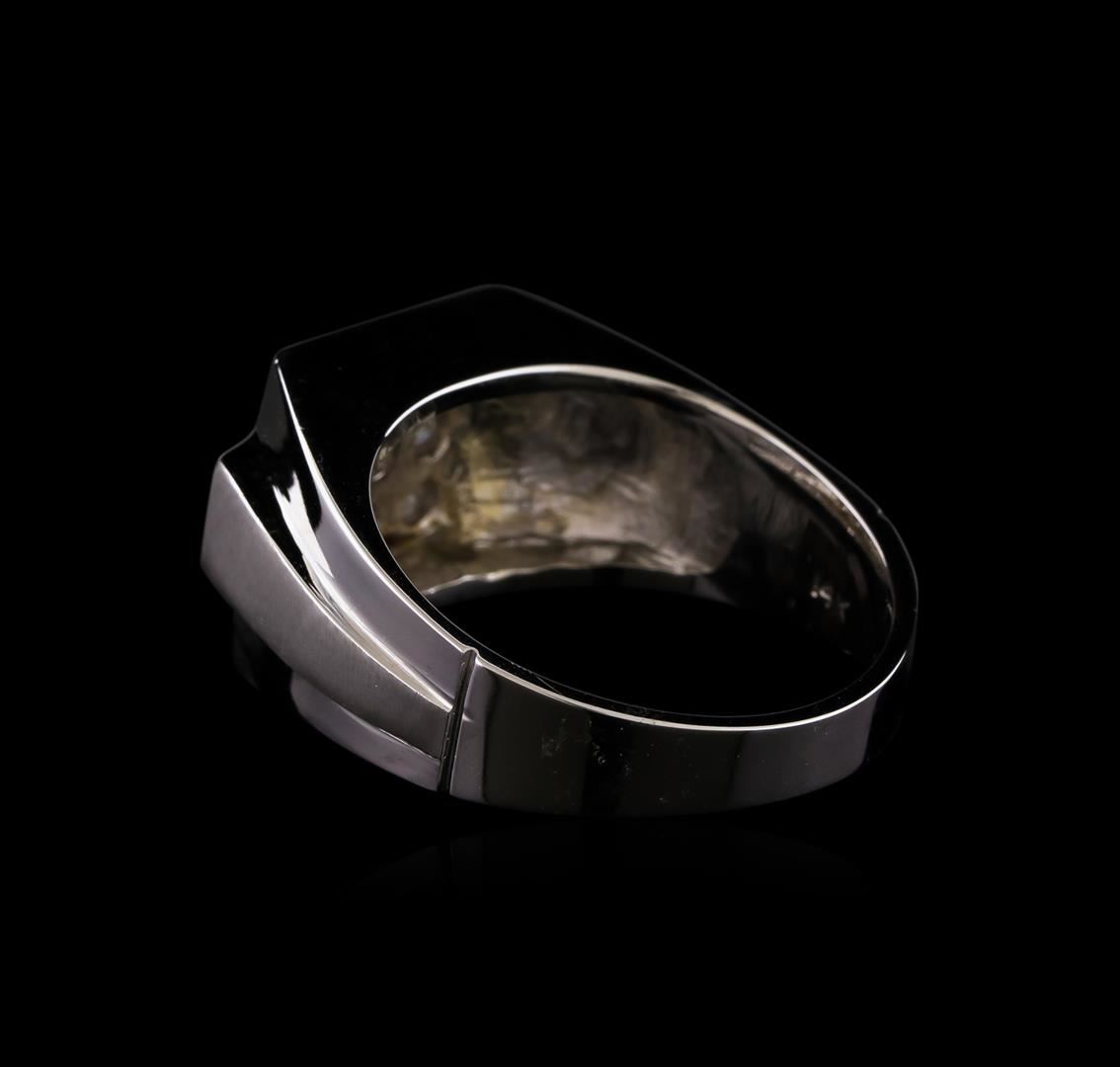 One electronically tested 14KT white gold men's combination cast & assembled diamond ring with a bright polish finish. Identified with markings of "14K". Condition is new. Containing: Nine prong set round brilliant cut diamonds, measuring 2.90 - 2.90 x 1.74mm (depth est.) approximate total weight of 9 Stones = 0.80ct. Clarity: SI-1 to SI-2. Color: I - J, Cut is Good. All diamonds are graded in the mounting, unless otherwise stated. Total Weight of Diamonds 0.80ct. Total Weight of Ring 12.80 grams. GGL Appraised at $5,425.00.
