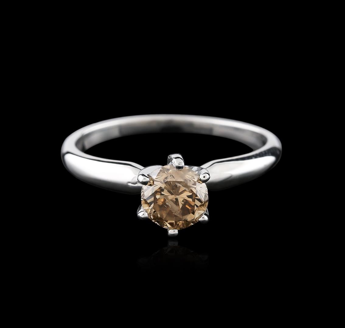 One electronically tested 14KT white gold ladies cast diamond solitaire ring with a half round shank with a bright polish finish. Identified with markings of "14K". Condition is new. Containing: One prong set round brilliant cut diamond, measuring 5.62 - 5.58 x 3.92mm (depth est.) exact weight 0.80ct. Clarity: I-1, Cut is Good. Diamonds are graded in the mounting, unless otherwise stated. Total Weight of Diamonds 0.80ct. Total Weight of Solitaire Ring 2.40 grams. GGL Appraised at $2,090.00.
