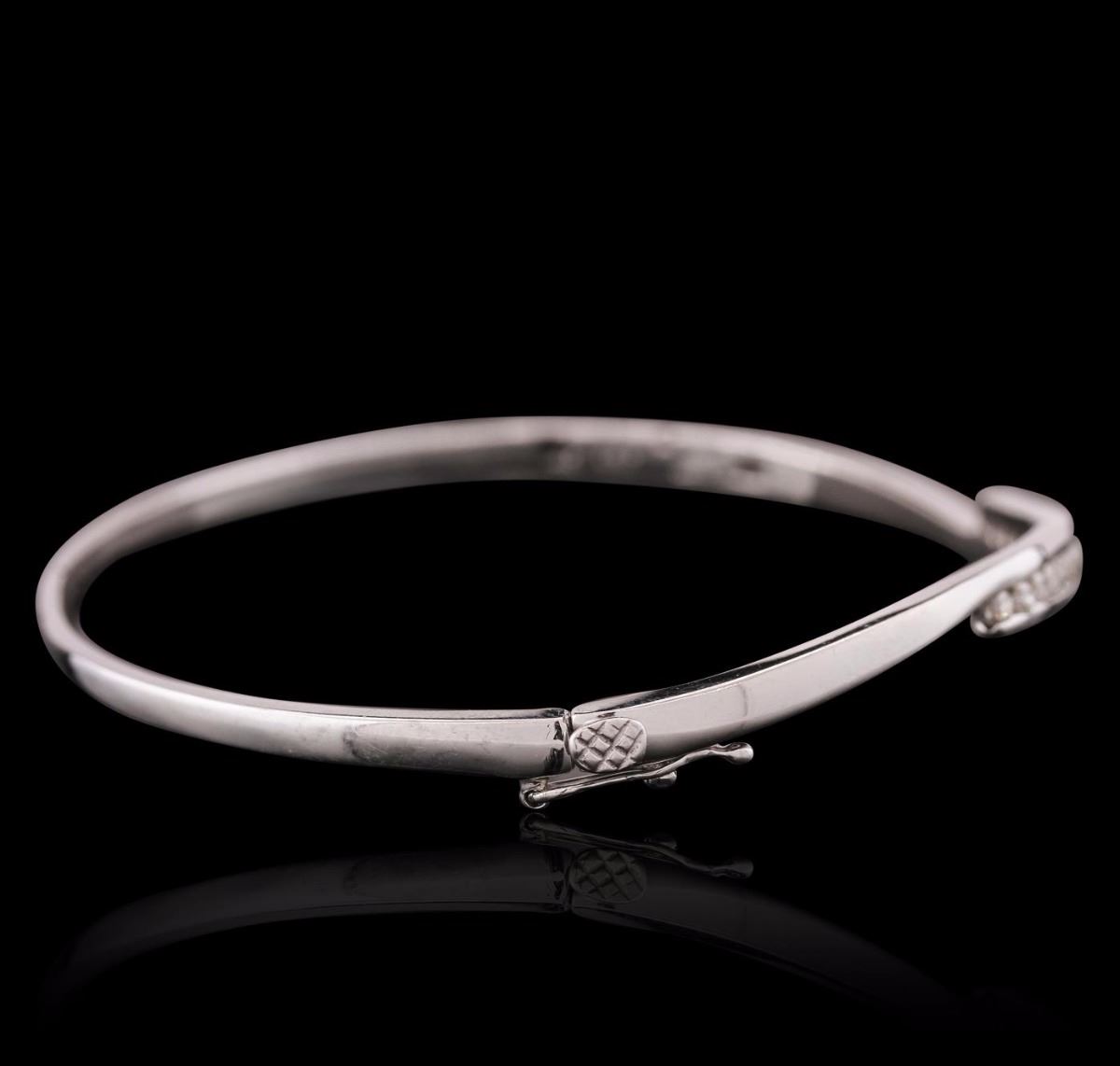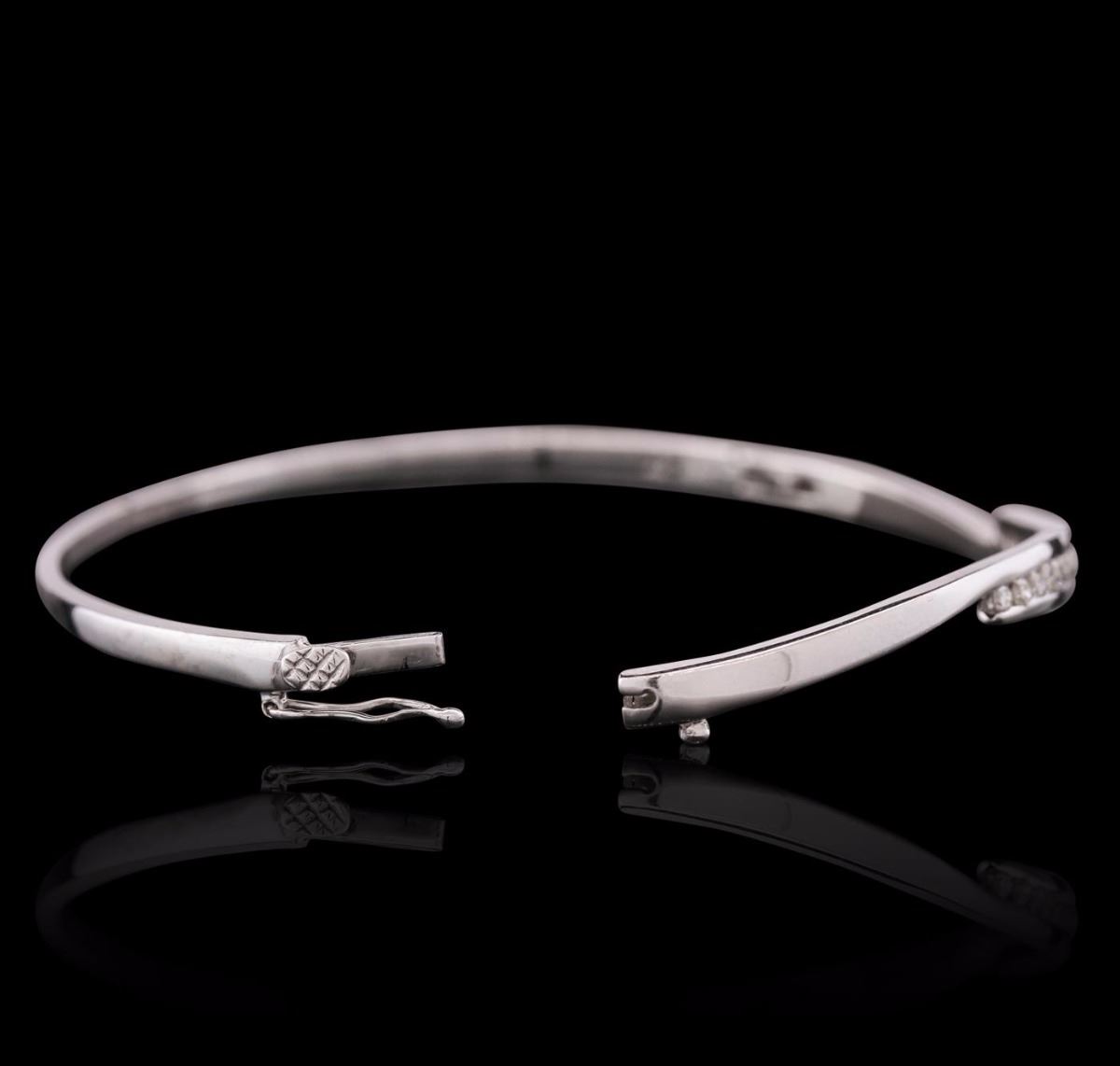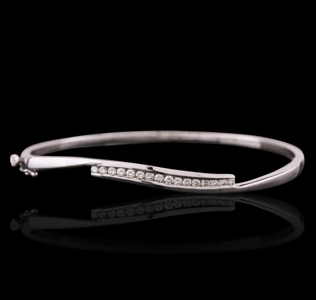 One bangle bracelet with safety clasp featuring: 14KT white gold weighing 12.80 grams containing 16 round cut diamonds with a total weight of 0.80cts.