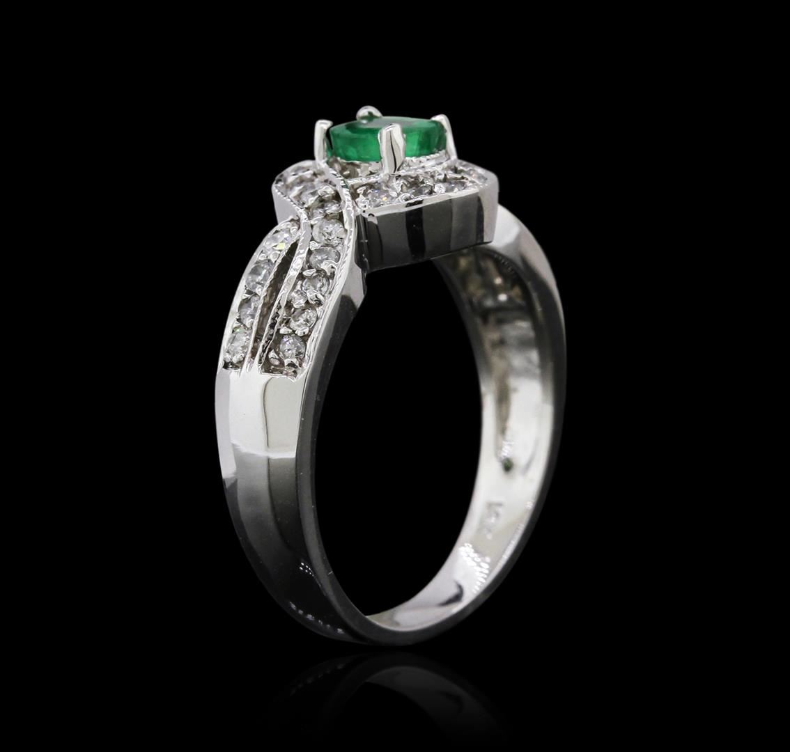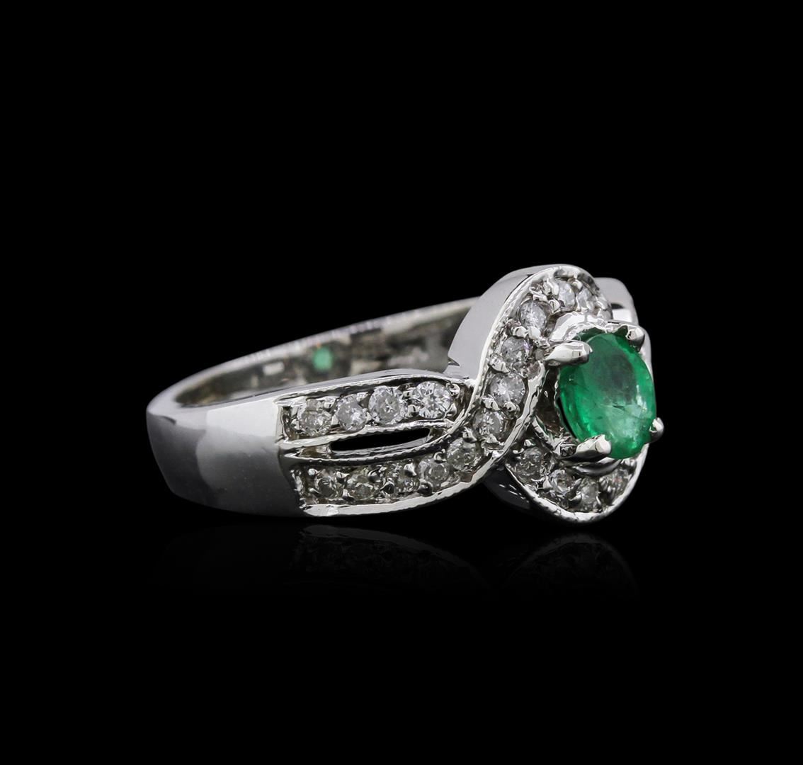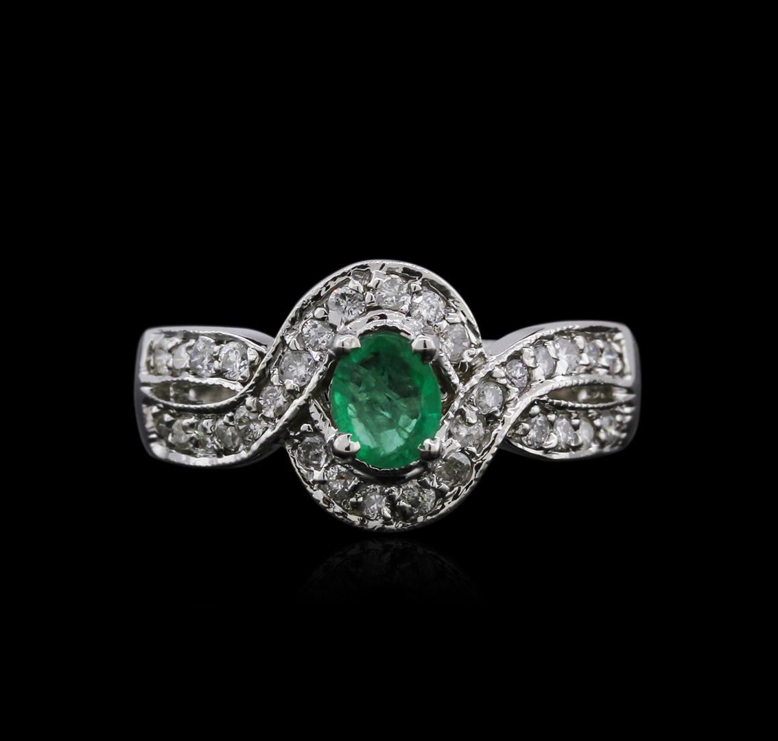 One ring featuring: 14KT white gold weighing 5.05 grams containing one emerald center stone with a total weight of 0.82ct and 24 diamonds with a total weight of 0.43ct.
