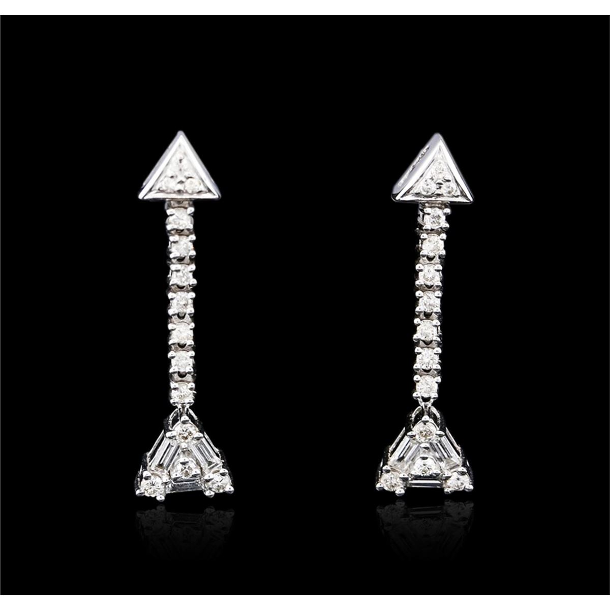One pair of earrings featuring: 14KT white gold weighing 4.30 grams containing round cut/baguette cut diamonds with a total weight of 0.84cts.