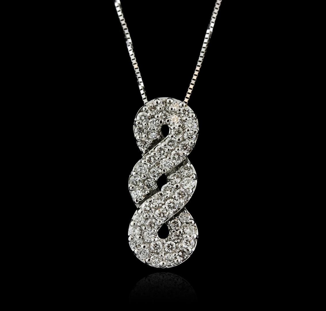 One pendant with chain featuring: 14KT white gold weighing 3.30 grams containing diamonds with a total weight of 0.84ct.