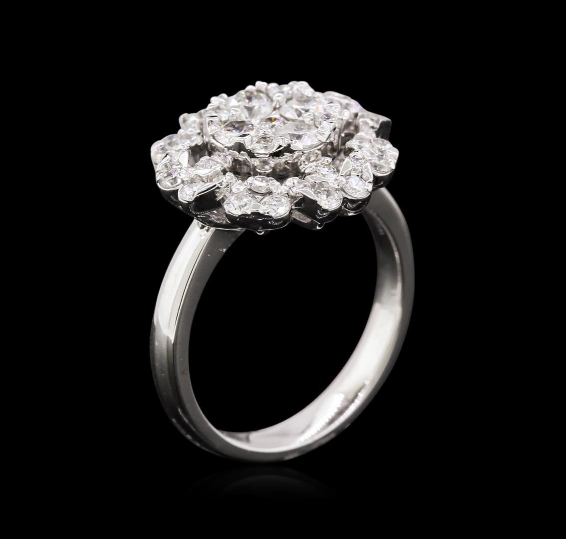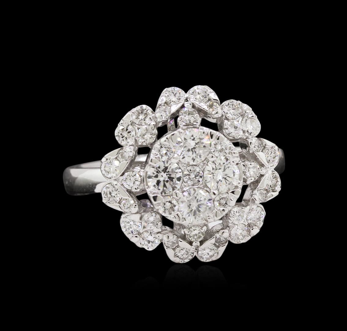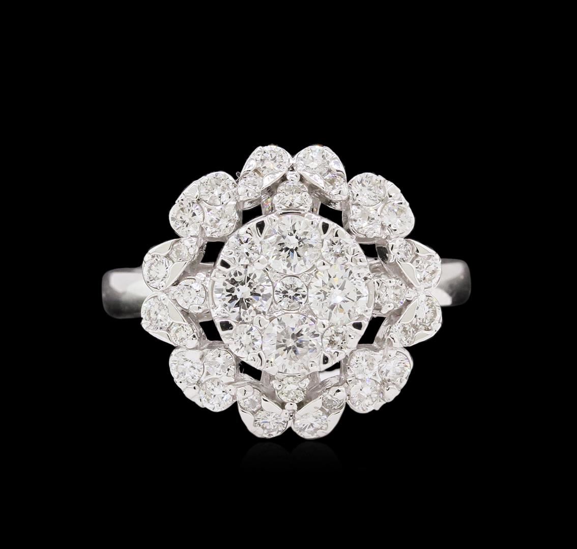 One electronically tested 14KT white gold ladies combination cast & assembled diamond ring with a bright polish finish. Identified with markings of "14K". Condition is new. Containing: Four prong set round brilliant cut diamonds, measuring 3.10 - 3.10 x 1.86mm (depth est.) approximate total weight of 4 Stones = 0.44ct. Clarity: SI-2. Color: H - I, Cut is Good. Thirty-Seven prong set round brilliant cut diamonds, measuring 1.80 - 1.30 x 0.93mm (depth est.) approximate total weight of 37 Stones = 0.40ct. Clarity: SI-2 to I-1. Color: I - J, Cut is Good. All diamonds are graded in the mounting, unless otherwise stated. Total Weight of Diamonds 0.84ct. Total Weight of Ring 5.80 grams. GGL Appraised at $3,770.00.