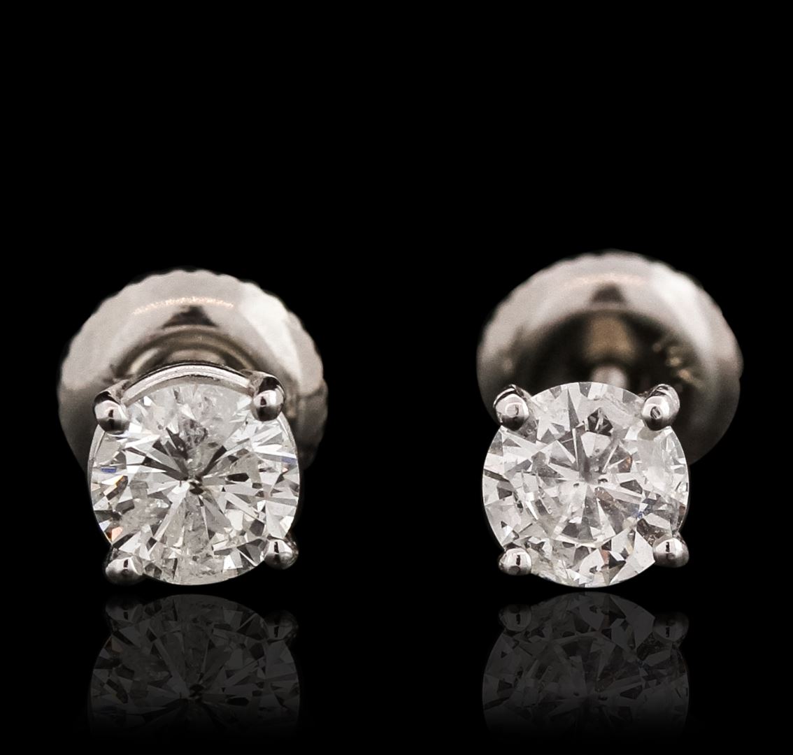 One pair of earrings featuring: 14KT white gold with a total weight of 1.19 grams, and diamond with a total weight of 0.84ct.