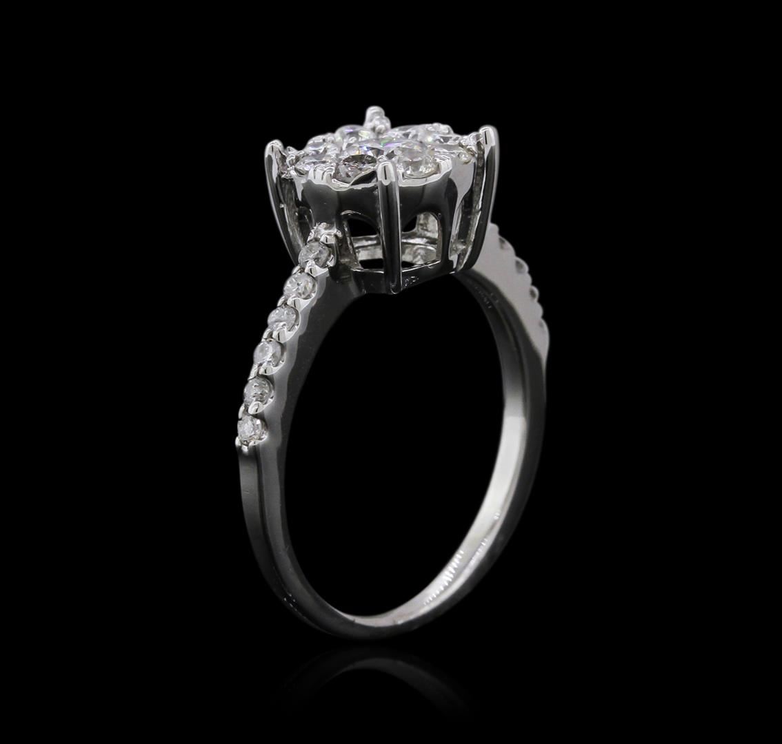 One ring featuring: 14KT white gold weighing 2.63 grams containing one diamond center stone with a total weight of 0.30ct and side diamonds with a total weight of 0.55ct.