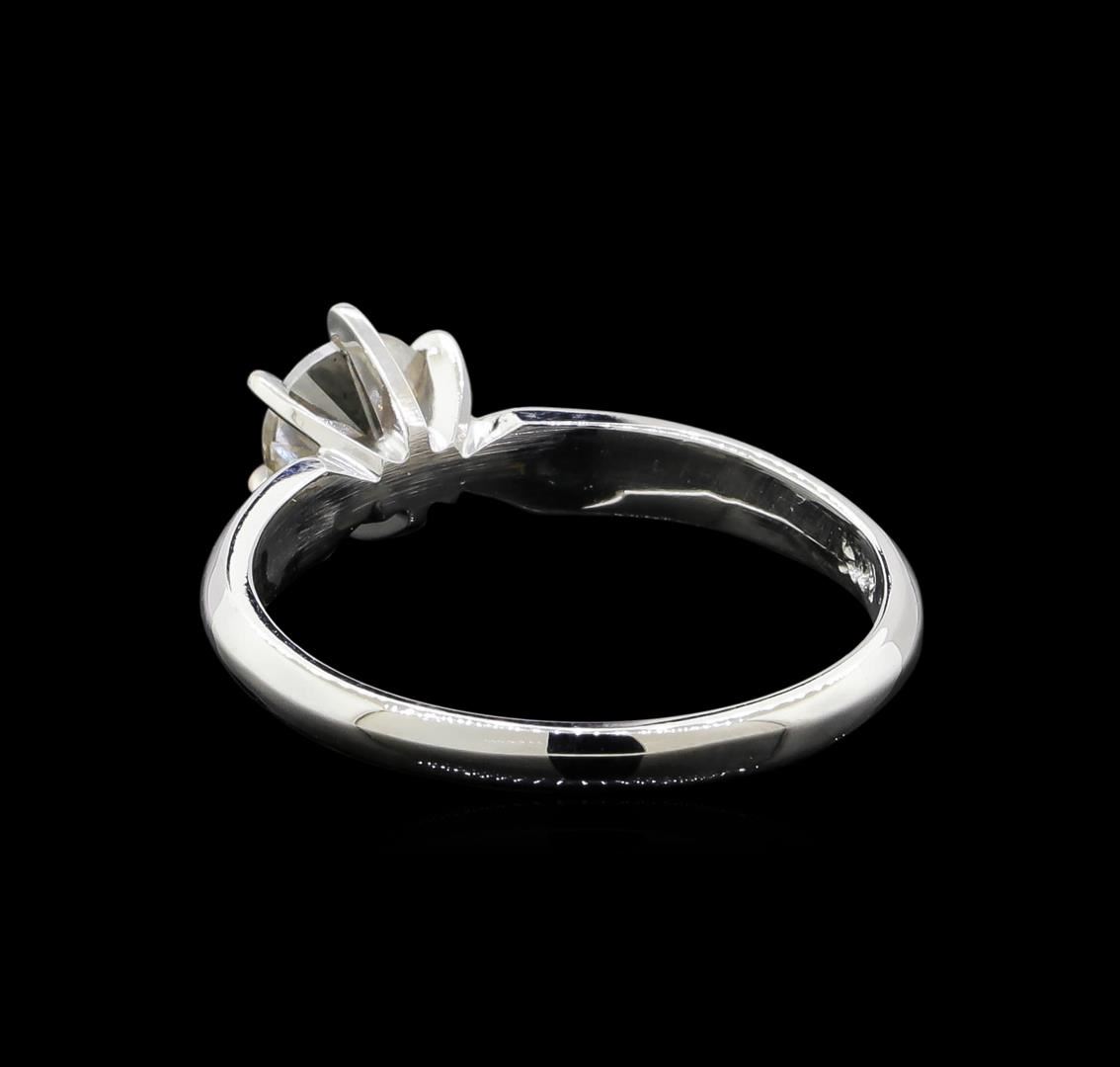 One electronically tested 14KT white gold ladies cast diamond solitaire ring with a half round shank with a bright polish finish. Identified with markings of "14K". Condition is new. Containing: One prong set round brilliant cut diamond, measuring 5.70 - 5.70 x 3.42mm (depth est.) exact weight 0.85ct. Clarity: I-2. Color: K, Cut is Good. Diamonds are graded in the mounting, unless otherwise stated. Total Weight of Diamonds 0.85ct. Total Weight of Solitaire Ring 2.70 grams. GGL Appraised.