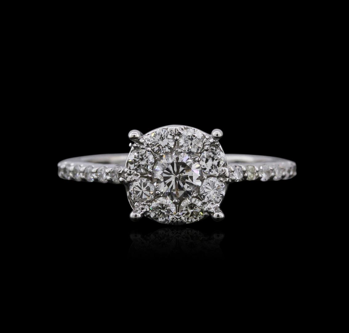 One ring featuring: 14KT white gold weighing 2.63 grams containing one diamond center stone with a total weight of 0.30ct and side diamonds with a total weight of 0.55ct.