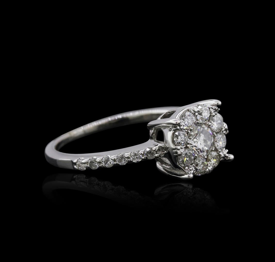 One ring featuring: 14KT white gold weighing 2.63 grams containing one diamond center stone with a total weight of 0.30ct and side diamonds with a total weight of 0.55ct.