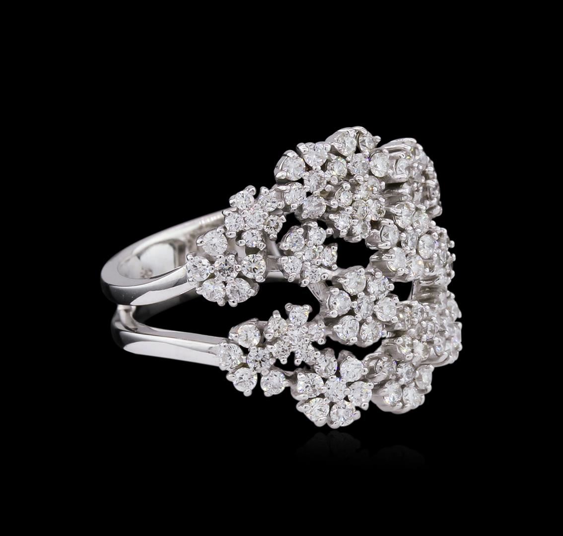 One electronically tested 14KT white gold ladies combination cast & assembled diamond ring with a bright polish finish. Identified with markings of "585". Condition is new. Containing: One Hundred prong set round brilliant cut diamonds, measuring 1.30 - 1.30 x 0.78mm (depth est.) approximate total weight of 100 Stones = 0.80ct. Clarity: SI-2 to I-1. Color: H - I, Cut is Good. All diamonds are graded in the mounting, unless otherwise stated. Total Weight of Diamonds 0.80ct. Total Weight of Ring 5.50 grams. GGL Appraised at $3,630.00.