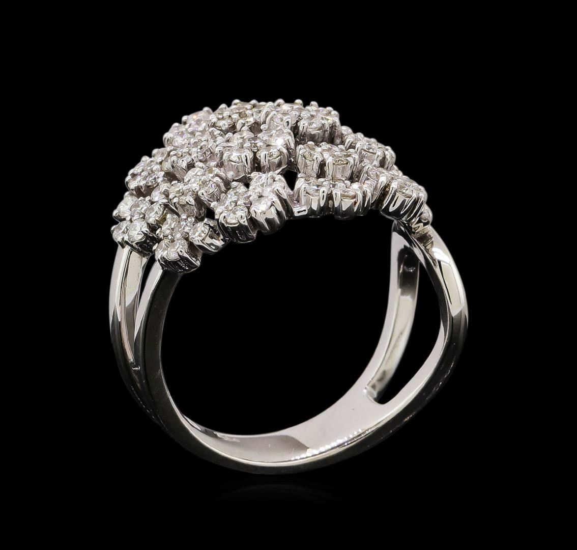 One electronically tested 14KT white gold ladies combination cast & assembled diamond ring with a bright polish finish. Identified with markings of "585". Condition is new. Containing: One Hundred prong set round brilliant cut diamonds, measuring 1.30 - 1.30 x 0.78mm (depth est.) approximate total weight of 100 Stones = 0.80ct. Clarity: SI-2 to I-1. Color: H - I, Cut is Good. All diamonds are graded in the mounting, unless otherwise stated. Total Weight of Diamonds 0.80ct. Total Weight of Ring 5.50 grams. GGL Appraised at $3,630.00.