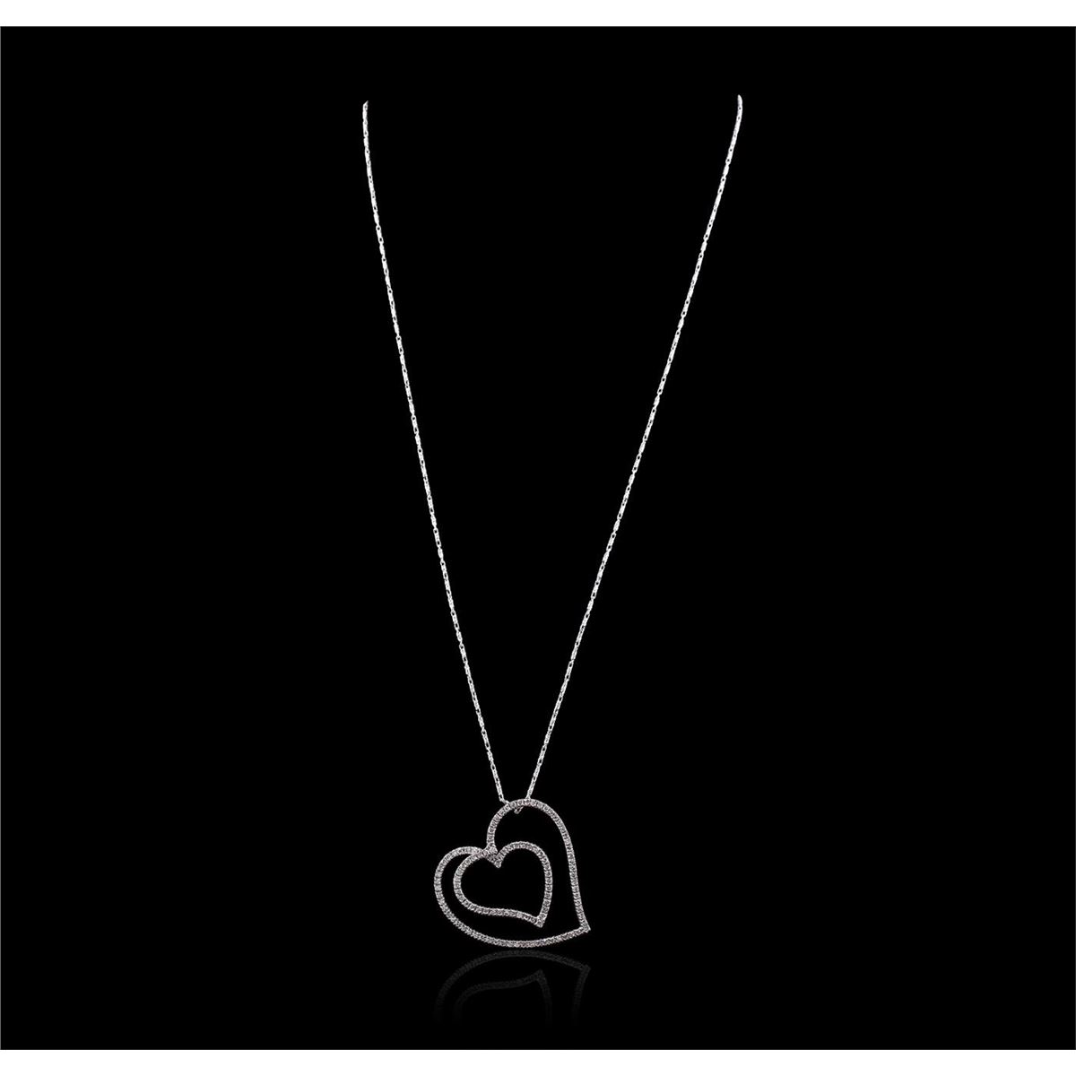 One electronically tested 14KT white gold ladies combination cast & assembled pendant & chain 18.0" long, light fancy link with a lobster claw clasp with a bright polish finish. Identified with markings of "585". Condition is new. Containing: One Hundred Eight prong set round brilliant cut diamonds, measuring 1.30 - 1.30 x 0.78mm (depth est.) approximate total weight of 108 Stones = 0.86ct. Clarity: SI-2 to I-1. Color: J - K, Cut is Good. All diamonds are graded in the mounting, unless otherwise stated. Total Weight of Diamonds 0.86ct. Total Weight of Pendant & Chain 11.90 grams. GGL Appraised at $5,835.00.