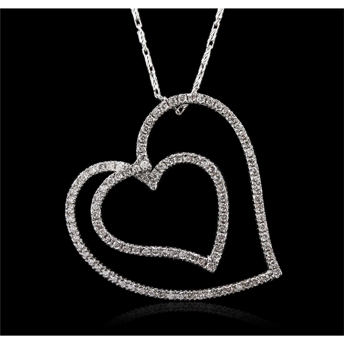 One electronically tested 14KT white gold ladies combination cast & assembled pendant & chain 18.0" long, light fancy link with a lobster claw clasp with a bright polish finish. Identified with markings of "585". Condition is new. Containing: One Hundred Eight prong set round brilliant cut diamonds, measuring 1.30 - 1.30 x 0.78mm (depth est.) approximate total weight of 108 Stones = 0.86ct. Clarity: SI-2 to I-1. Color: J - K, Cut is Good. All diamonds are graded in the mounting, unless otherwise stated. Total Weight of Diamonds 0.86ct. Total Weight of Pendant & Chain 11.90 grams. GGL Appraised at $5,835.00.