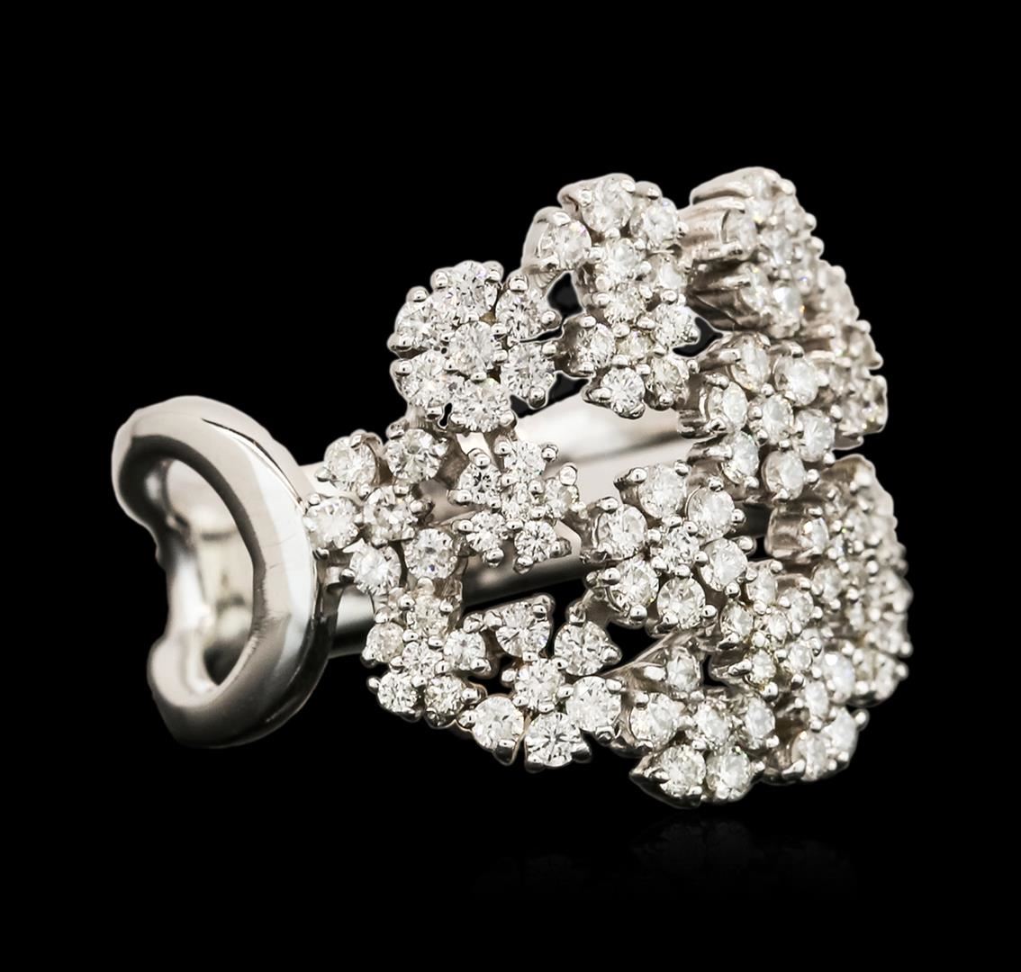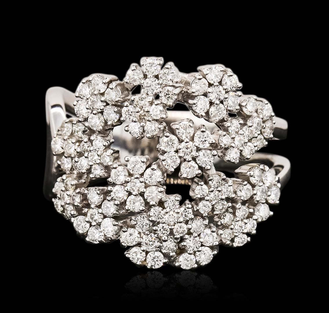 One electronically tested 14KT white gold ladies combination cast & assembled diamond ring with a bright polish finish. Identified with markings of "585". Condition is new. Containing: One Hundred prong set round brilliant cut diamonds, measuring 1.30 - 1.30 x 0.78mm (depth est.) approximate total weight of 100 Stones = 0.80ct. Clarity: SI-2 to I-1. Color: H - I, Cut is Good. All diamonds are graded in the mounting, unless otherwise stated. Total Weight of Diamonds 0.80ct. Total Weight of Ring 5.50 grams. GGL Appraised at $3,630.00.