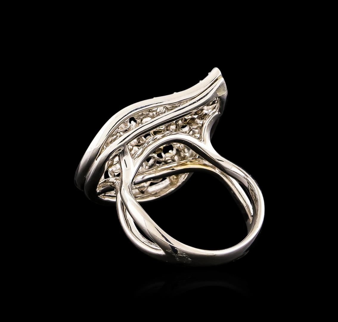 One electronically tested 14KT white gold Ladies combination cast & assembled ring with a bright polish finish. Condition is new. Identified with markings of "14K". Containing: Forty-Four prong set round brilliant cut diamonds, measuring 2.00 - 1.30 x 0.99mm (depth est.) approximate. Total Weight of 44 Stones = 0.88ct. Clarity: SI-2 to I-1. Color: H - I, Cut is Good. All diamonds are graded in the mounting, unless otherwise stated. Total Weight of Diamonds 0.88ct. Total Weight of Ring 8.70 grams. GGL Appraised.