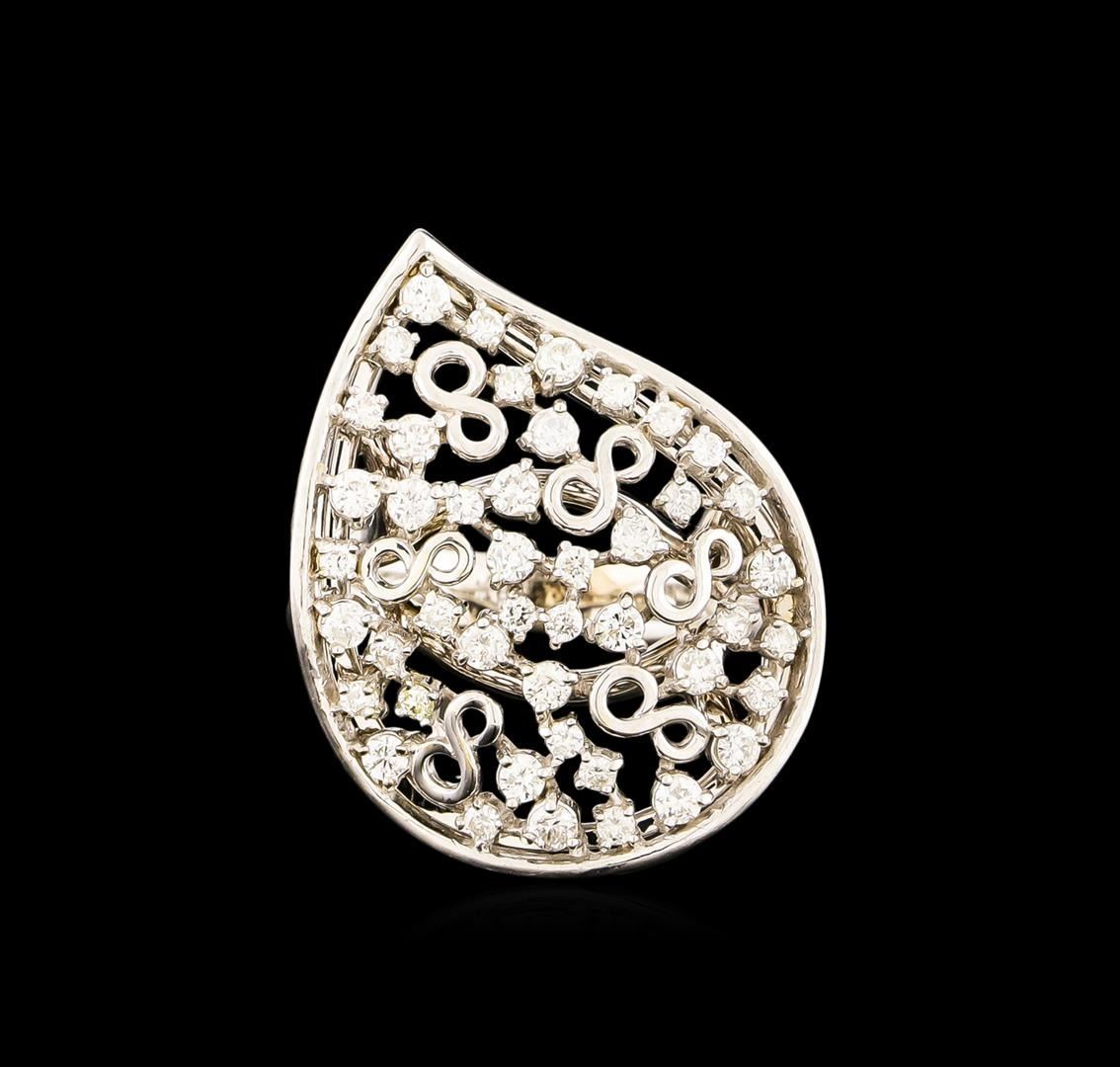 One electronically tested 14KT white gold Ladies combination cast & assembled ring with a bright polish finish. Condition is new. Identified with markings of "14K". Containing: Forty-Four prong set round brilliant cut diamonds, measuring 2.00 - 1.30 x 0.99mm (depth est.) approximate. Total Weight of 44 Stones = 0.88ct. Clarity: SI-2 to I-1. Color: H - I, Cut is Good. All diamonds are graded in the mounting, unless otherwise stated. Total Weight of Diamonds 0.88ct. Total Weight of Ring 8.70 grams. GGL Appraised.